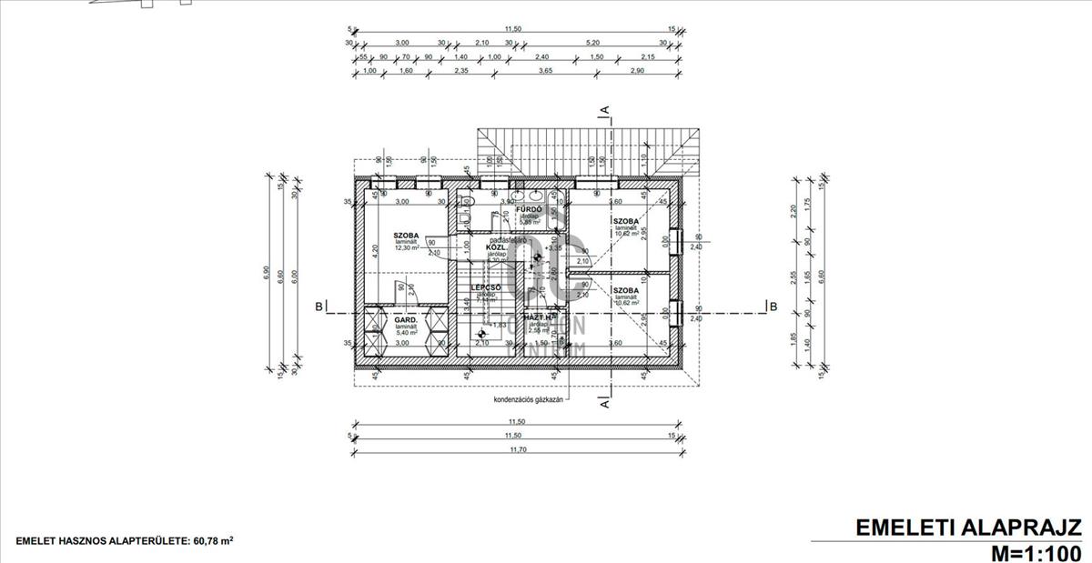 Emelet helyiségei : 3 szoba, fürdő, háztartási helyiség + az egyik szobához gardrob szoba.