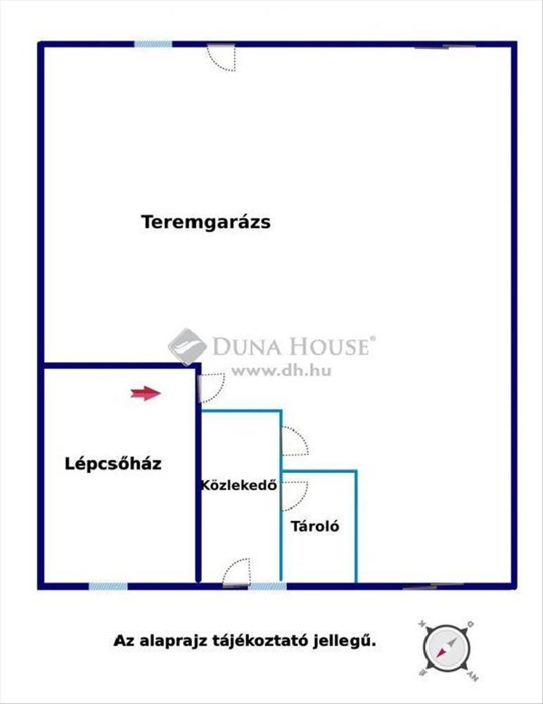 A földszinten egy tágas teremgarázs található, amely 2 autó számára parkolási, valamint az udvarra áthajtási lehetőséget biztosít. (De akár 4 autó is elfér kényelmesen. )
