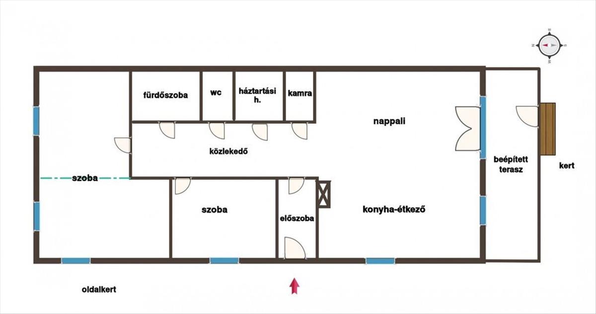 A ház praktikus elrendezésű, tágas, amerikai konyhás nappalival és két külön bejáratú szobával rendelkezik (jelenleg 2 hálószobás, de könnyedén 3 szobássá alakítható).