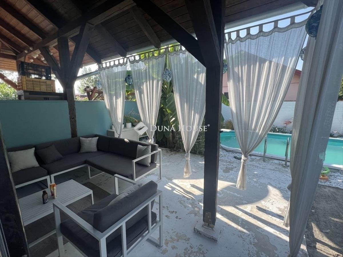 English version see below! Eladó ikerház Délegyházán, a Kéktó sétányon medencével, grillezővel, nyugalomban! Álmodtál már egy olyan otthonról, ahol reggel madárcsicsergésre ébredsz, napközben a saját medencédben csobbanhatsz, este pedig a kertben grillezhetsz a barátokkal? Most valóra válhat! Ez a ház nemcsak otthon, hanem életérzés. a Dél-Pesttől mindössze 30 percre található Délegyháza igazi kis zöld oázis, tele tavakkal, horgászási és strandolási lehetőségekkel, nyugalommal és közösségi élettel. a Kéktó sétány különösen kedvelt része a településnek rendezett, barátságos környezet, gyönyörű természeti adottságokkal. Az ingatlanról röviden: Tágas, napfényes családi ház gondozott kerttel Saját medence tökéletes a nyári felfrissüléshez Kerti grillező baráti összejövetelekhez, családi vacsorákhoz Parkolási lehetőség az udvaron, vagy a ház előtt Csendes utca, mégis közel mindenhez. a ház alapterülete 90nm, elosztása tökéletes: kényelmes két háló szoba, nagy méretű kádas fürdő-WC, vendég wc, gardrób szoba, mosókonyha, hatalmas nappali - konyha - étkezőA minőségi konyhabútor gépekkel és a beépített bútorok az ár részét képezi. a telek 556nm. Az ikerház albetétesített, igazi ritkaság ilyen áron ilyen házat vásárolni a mai ingatlan piacon! További extrák a vételárban: nívó biztonsági bejárati ajtónagy méretű egyedi konyhaszigetgránit kompozit mosogatógőzsütő6 égős indukciós főzőlapbeépített mikróhullámúsütő, nem fém érzékenybeépített dupla fagyasztós hűtőmosogatógépDaino Reale márványpadló elektromos redőny, szúnyogháló, sávroló az ablakokon kerti tároló faházautomata öntözőrendszerA medence mérete: 7, 8x3, 6 méteres, Thassosi márvány kavics található körülötte és mediterrán növények: banánfa, árnyékliliom, sásliliom, óriás leander. a ház Thermo-Block energiatakarékos építési rendszer technológiával épült, a fűtést gázkazán biztosítja. a két hálószobában radiátoros fűtés található, minden más helyiségben padlófűtés van. Az ingatlan tehermentes, rövid határidőn belül költözhető. Miért érdemes itt élni? Kiváló választás kisgyermekes családoknak, természetkedvelőknek, nyugodt életre vágyóknak a környéken iskola, óvoda, bolt, helyi pékség, orvosi rendelő is megtalálható a délegyházi tavak gyalog pár perc nyáron strand, télen séta a parton Könnyen elérhető Budapest akár ingázóknak is ideális! Ne hagyja ki ezt a lehetőséget itt nemcsak házat vásárolsz, hanem életminőségetTovábbi információért hívjon! ENGLISH:Semi-detached house for sale in Délegyháza, on the Kéktó promenade with a pool, barbecue, and peace! Have you ever dreamed of a home where you wake up to birdsong in the morning, splash in your own pool during the day, and barbecue with friends in the garden in the evening? Now it can come true! Délegyháza Kéktó promenadeThis house is not only a home, but also a way of life. Located just 30 minutes from South Pest, Délegyháza is a real little green oasis, full of lakes, fishing and beach opportunities, peace and quiet, and a community life. The Kéktó promenade is a particularly popular part of the town a tidy, friendly environment with beautiful natural features. Briefly about the property:Spacious, sunny family house with a well-kept gardenPrivate pool perfect for summer refreshmentGarden barbecue for friendly gatherings, family dinnersParking in the yard or in front of the houseQuiet street, yet close to everythingThe floor area of the house is 90sqm, the distribution is perfect: comfortable two bedrooms, large bathroom with bathtub, guest toilet, wardrobe, laundry room, huge living room - kitchen - dining roomThe quality kitchen furniture with appliances and built-in furniture are part of the price. The plot is 556sqm. The semi-detached house is subdivided, it is a real rarity to buy such a house at such a price in todays real estate market! Additional extras in the purchase price:NÍVÓ security entrance doorlarge custom kitchen islandgranite composite sinksteam oven6-burner induction hobbuilt-in microwave, non-metal sensitivebuilt-in double freezer refrigeratordishwasherDaino Reale marble floorelectric shutters, mosquito nets, roller blinds on the windowsgarden storage shedautomatic irrigation systemThe pool : 7. 8X3. 6 Meters, Thassos marble gravel is around it and Mediterranean plants: banana tree, shade lily, sedge lily, giant oleander. The house was built with Thermo-Block energy-saving building system technology, heating is provided by a gas boiler. There is radiator heating in the two bedrooms, and underfloor heating in all other rooms. The property is unencumbered, ready to move in within a short period of time. Why is it worth living here? Excellent choice for families with young children, nature lovers, and those looking for a quiet lifeThere is a school, kindergarten, shop, local bakery, and doctors office in the areaThe lakes of Délegyháza are a few minutes walk away - beach in summer, walk on the shore in interEasily accessible to Budapest - ideal even for commutersDont miss this opportunity - here you are not only buying a house, but also quality of life! Call for more information!
