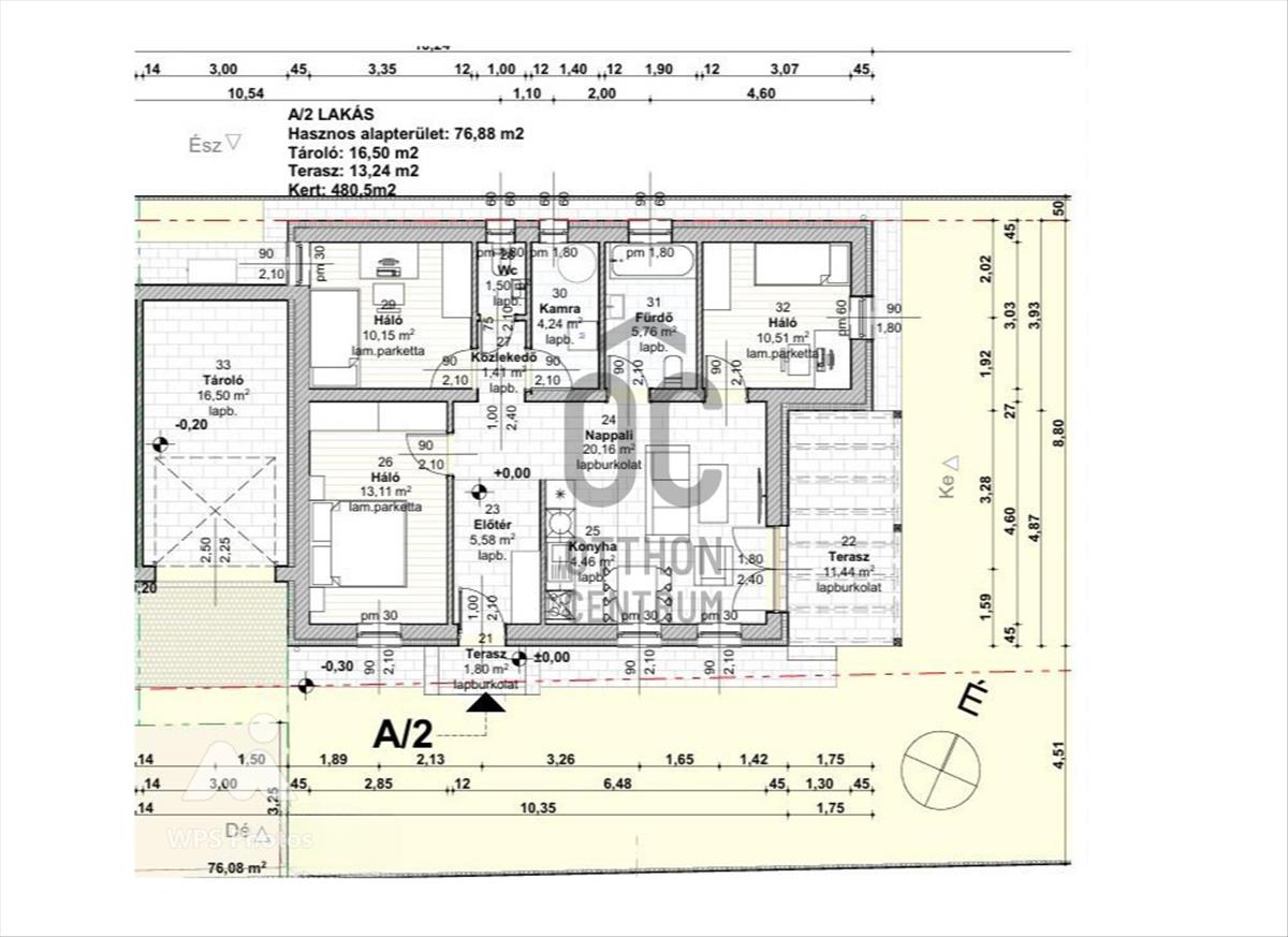 • nettó 76, 88m2, bruttó 93, 38 m2