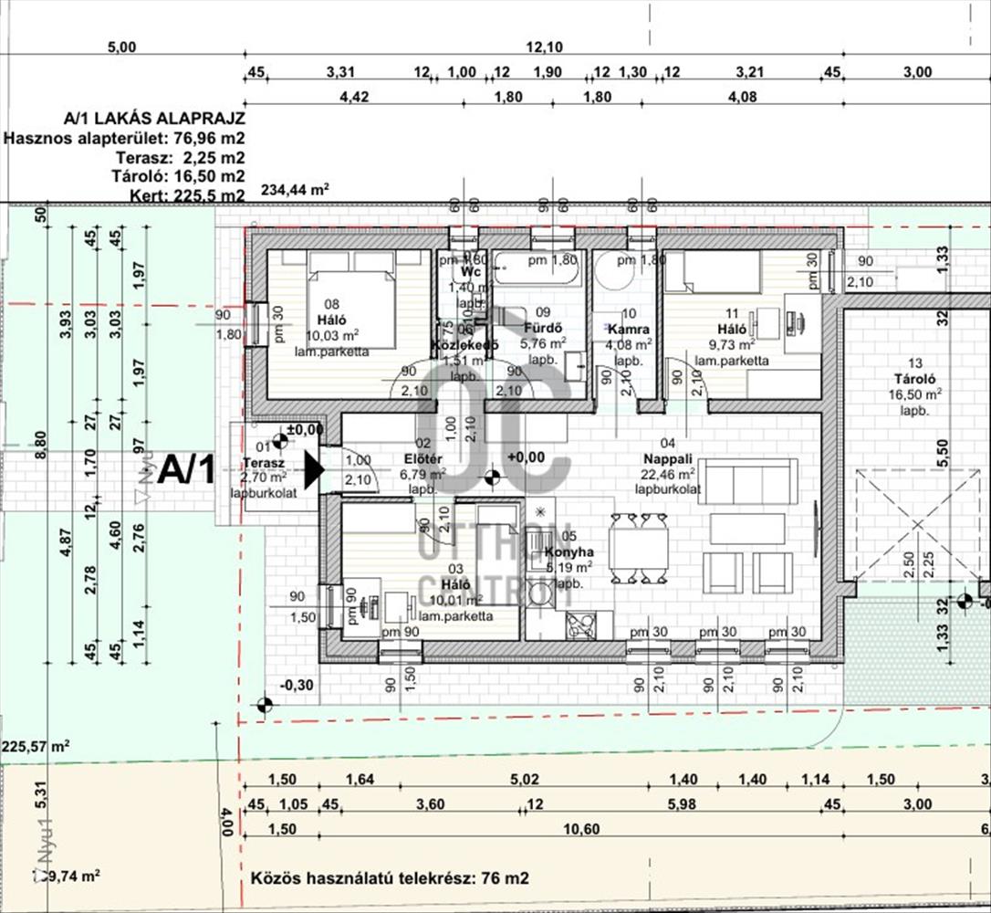• nettó 76, 96m2, bruttó 93, 46 m2