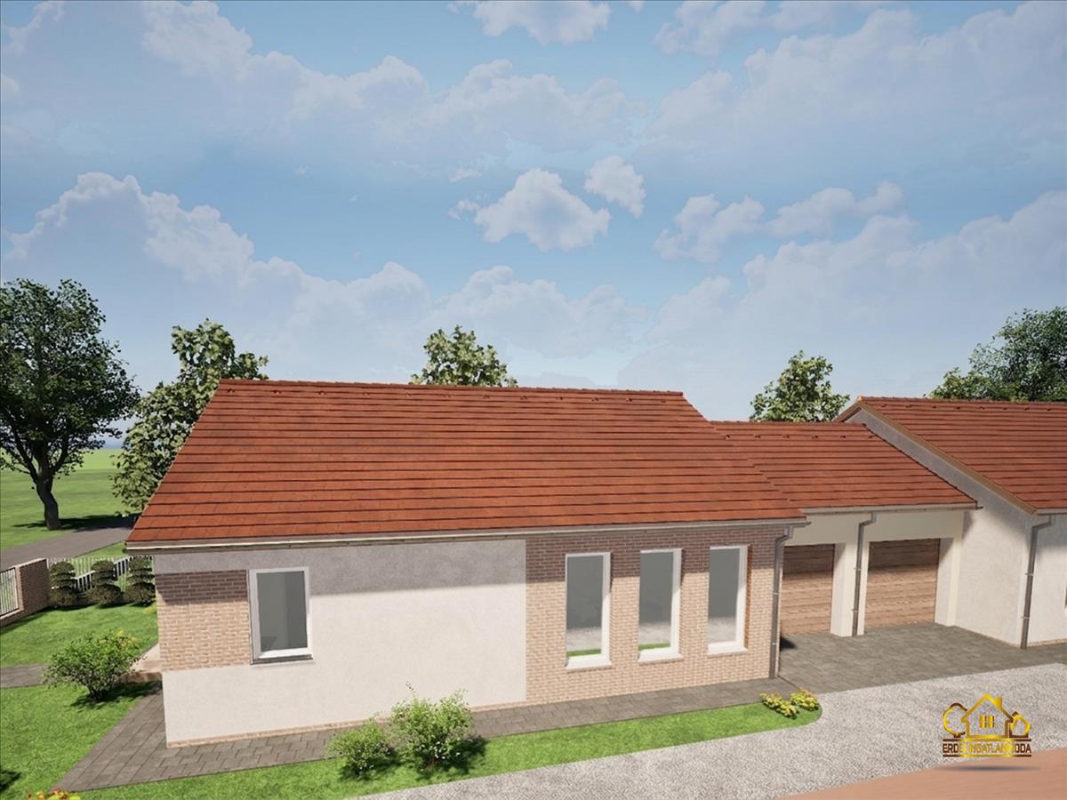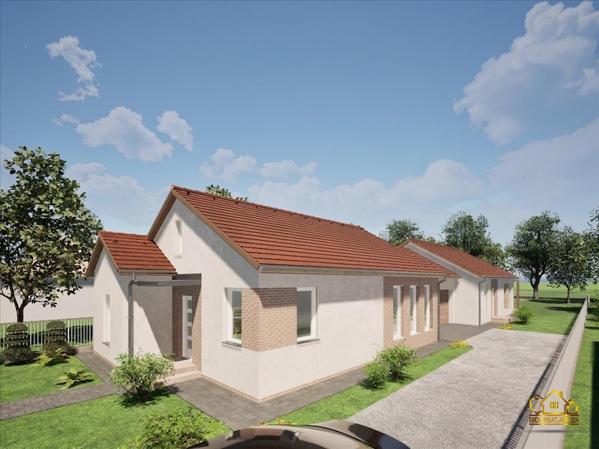 Eladó Dömsödön egy új építésű, nettó 77 m² alapterületű, egyszintes, hátsó ikerházi lakás.