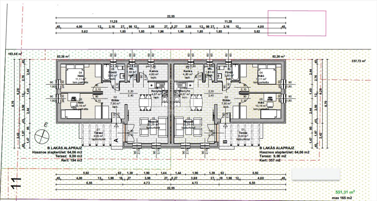 B Lakás - 64, 06 m2, telekméret 357 m2 - ára 50. 900. 000 Ft
