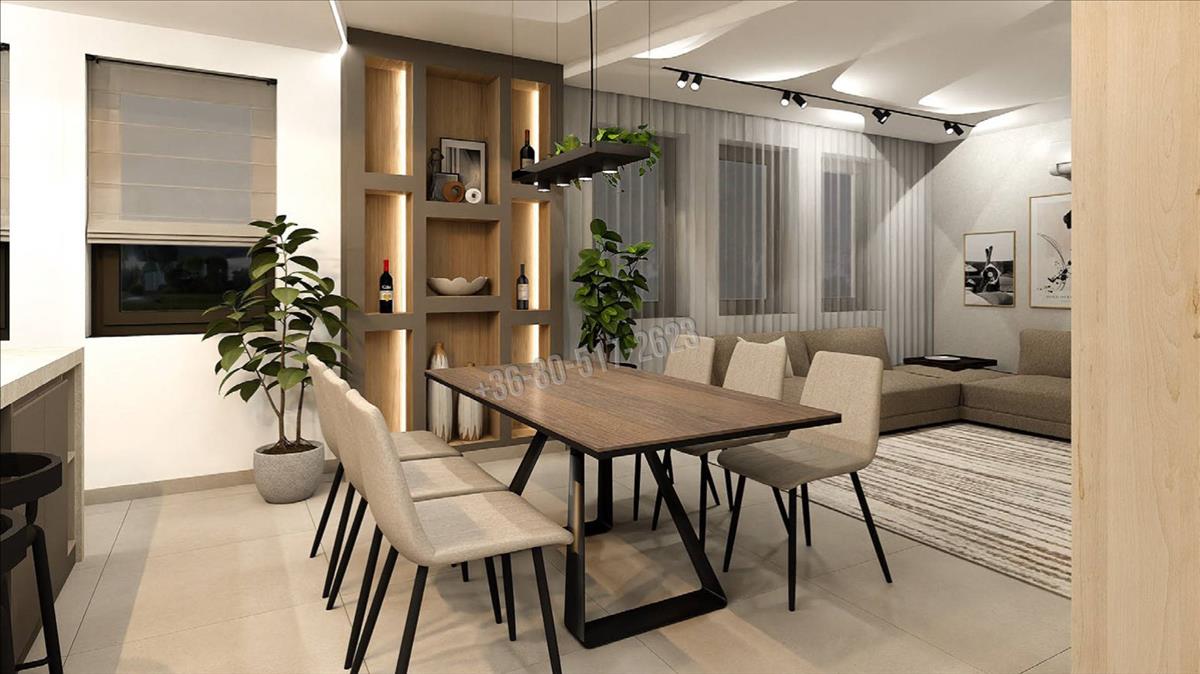 Igény szerint az ingatlan megvásárolható a belsőépítész által tervezett egyedi bútorokkal berendezve kulcsrakészen is.