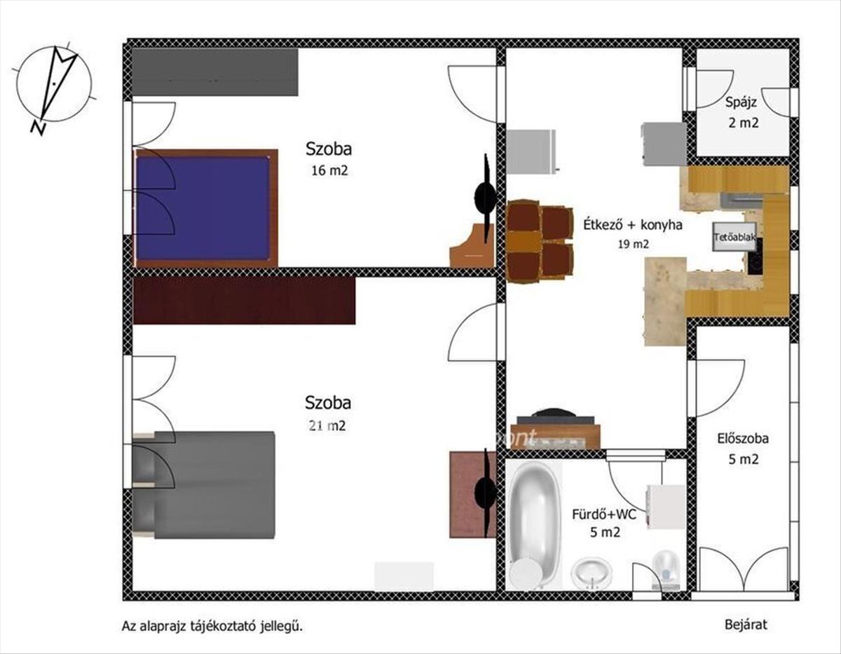 A ház 1960-ban épült beton alapon vegyes falszerkezettel, a tető fagerendás, cseréppel ellátott nyeregtető. Hasznos alapterülete 68 m2, melyben előszoba, 2 szoba, világos amerikai konyhás étkező (tetőablakkal! ), Spájz, fürdő + wc egyben található. a telek összközműves, víz, gáz, villany 3 fázis, főépületben 3x25A, melléképületben 3x20A és a szennyvízelvezetés csatornába megoldott. Fűtésről cirkó gázkazán gondoskodik, de van lehetőség kandallóval is. Melegvizet mindkét épületben villanybojler biztosítja. Zömében fa nyílászárók találhatóak, az előszobában szimpla üveges, alumínium keretes ajtó lett beépítve és fix, szintén alumínium keretes ablakok találhatók. a konyhában lévő tetőablak beépítésével a ház világosnak mondható. a szobákban laminált padló, a többi helyiségben esztétikus járólap található.