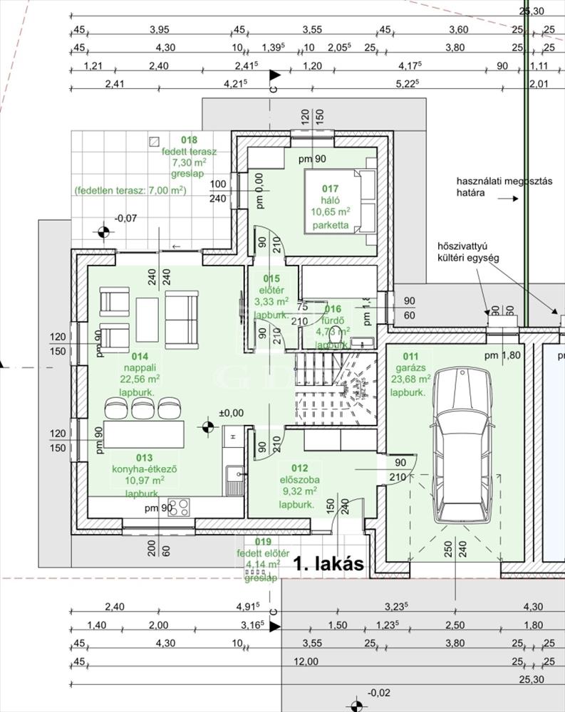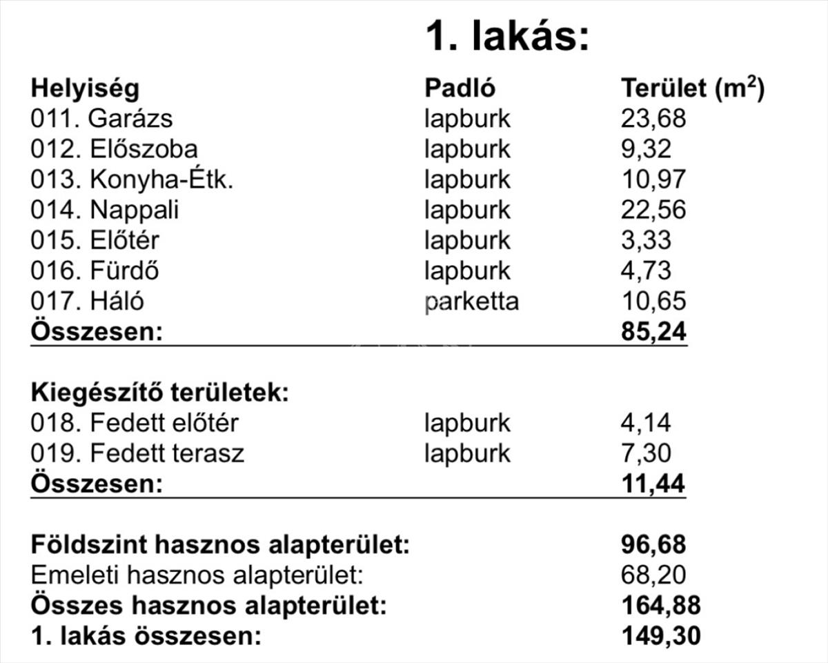 1. Lakás: nettó 126 nm alapterület + 24 nm garázs + 19 nm terasz, 509 nm telekterület, 200. 000. 000 Ft
