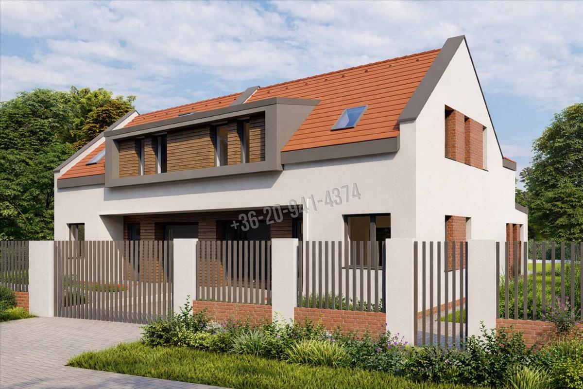 600 m2-es telken épül ez a nettó 150 m²-es, kétszintes ikerház ami jól átgondolt, családbarát elosztással épül.