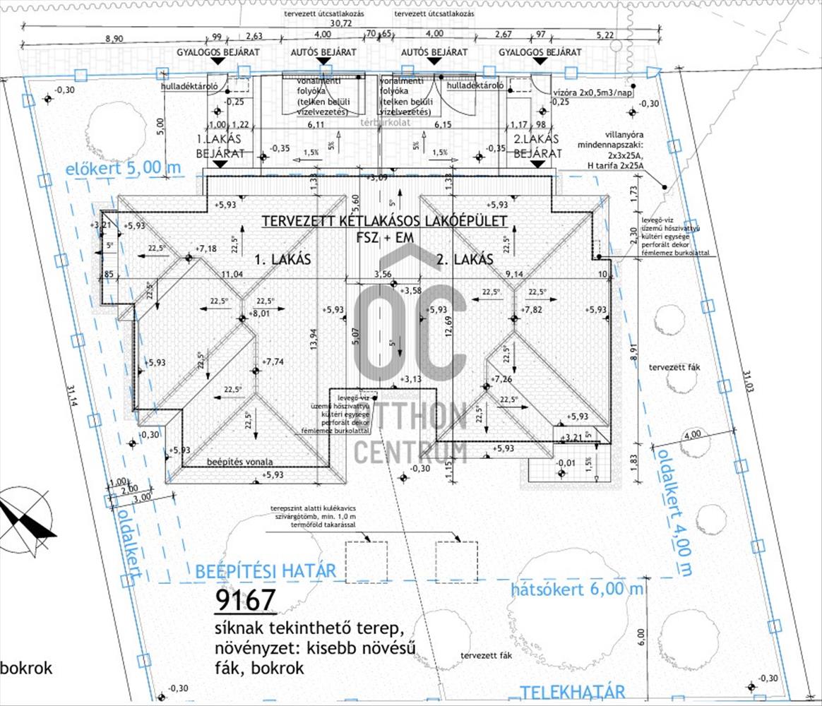 Az ingatlan Porotherm Klíma 30 kerámia falazó elemből, 10 cm-es eps külső hőszigeteléssel, 25 cm-es födémszigeteléssel, 3 rétegű műanyag nyílászárókkal + redőnnyel és szúnyoghálóval, betoncserép fedéssel épül. Burkolatok 6. 000 Ft / m2 áron szabadon megválaszthatóak.