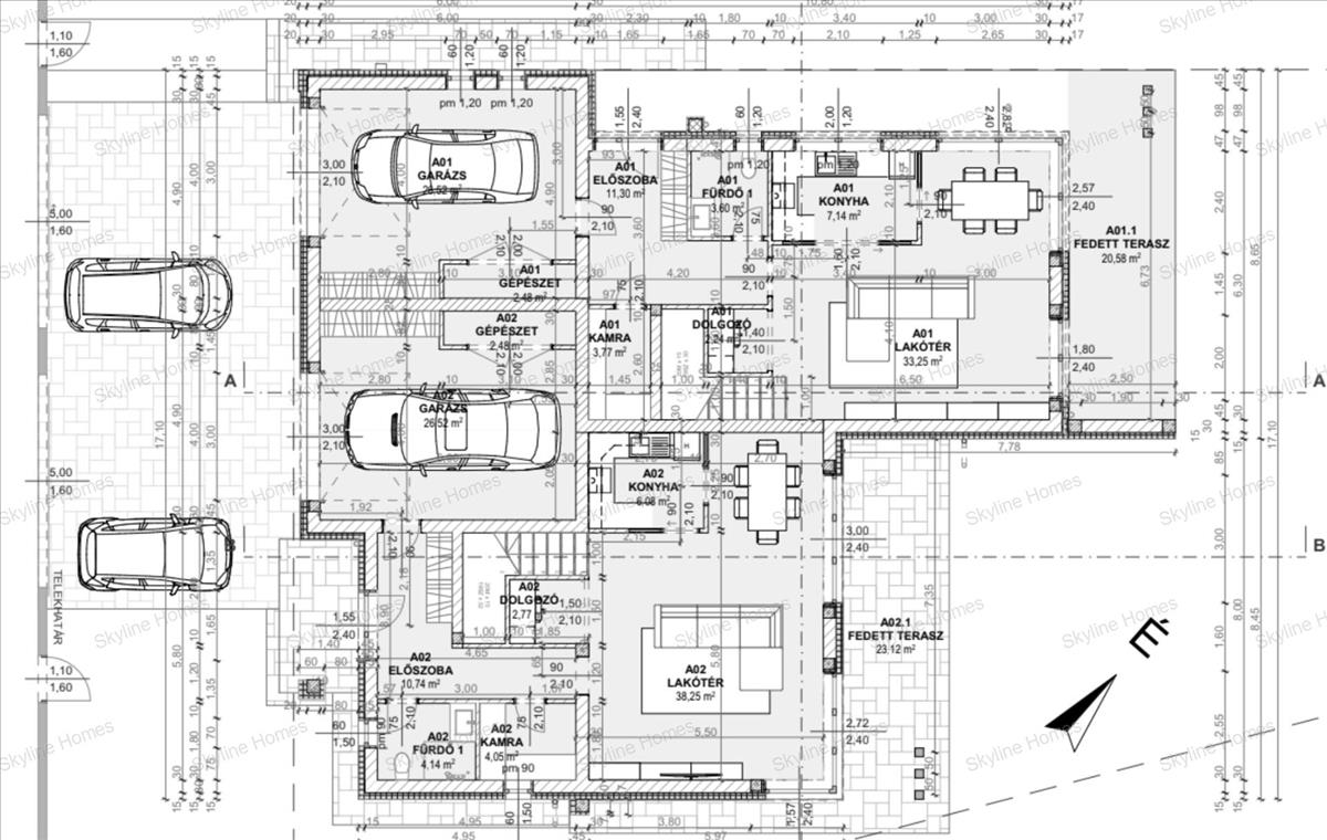 Mindkét ikerházfélhez kb. 550 M²-es, saját, körbekerített telekrész tartozik.