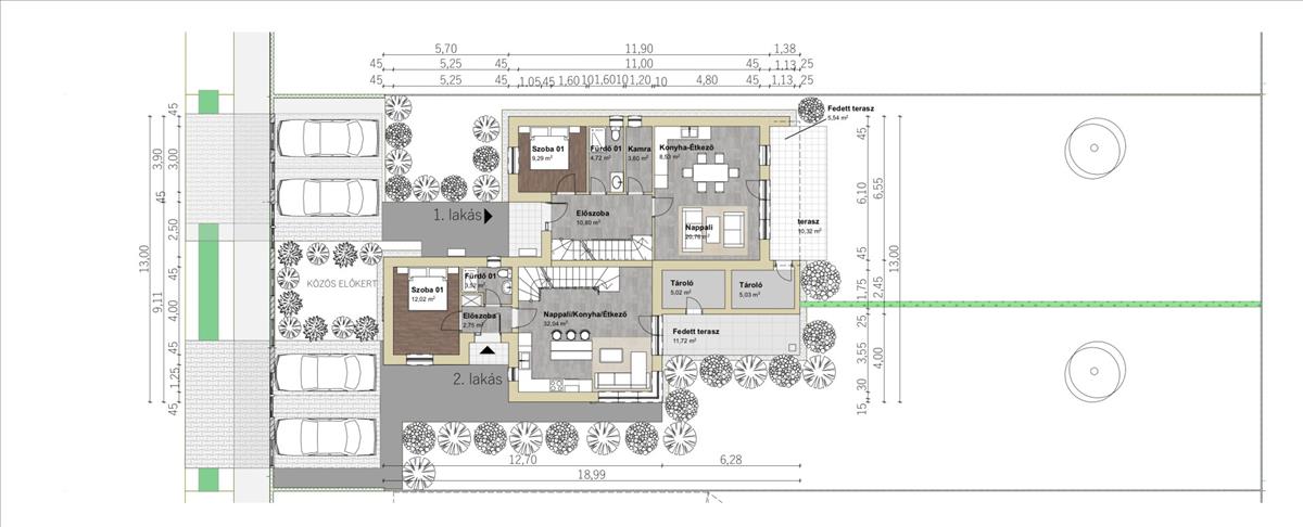Az épület magas műszaki tartalommal készül, mai kornak és elvárásoknak megfelelően. a két lakás között dupla hang-gátló fal készül és külön kerül kiöntésre a födém is. Magas hangsúlyt fektettek a két lakás külön választására, hogy mindkettő lakó funkció önálló ház életérzését nyújtsa!
