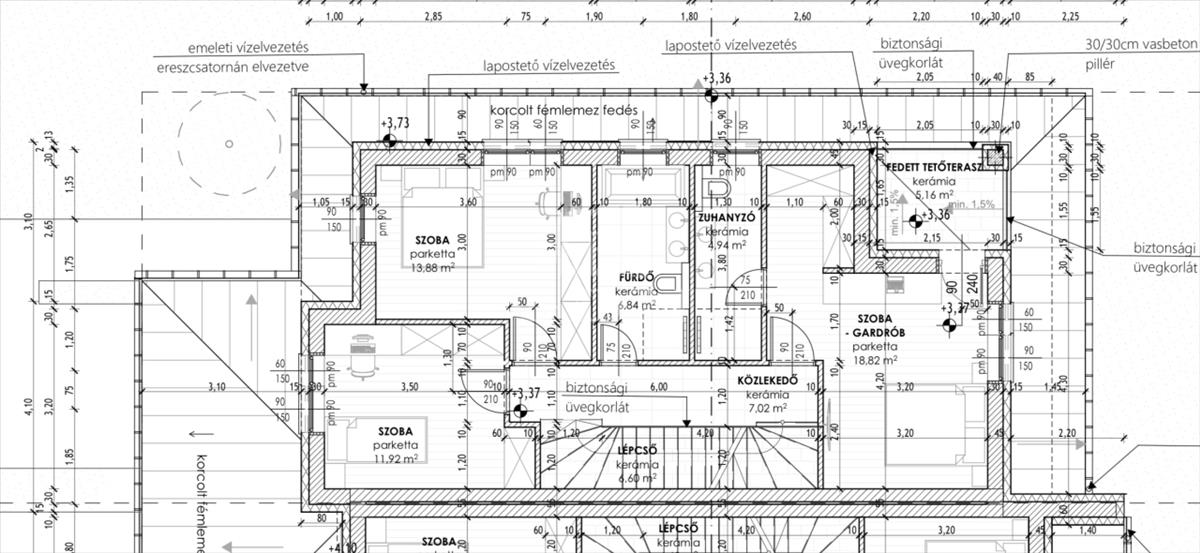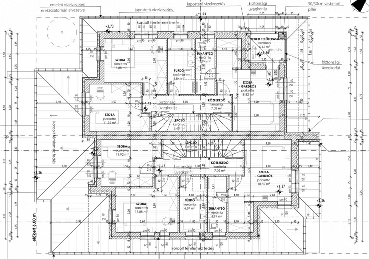 •Tető: monolit födém, lapostetős kialakítás, antracit színű fémlemez fedéssel