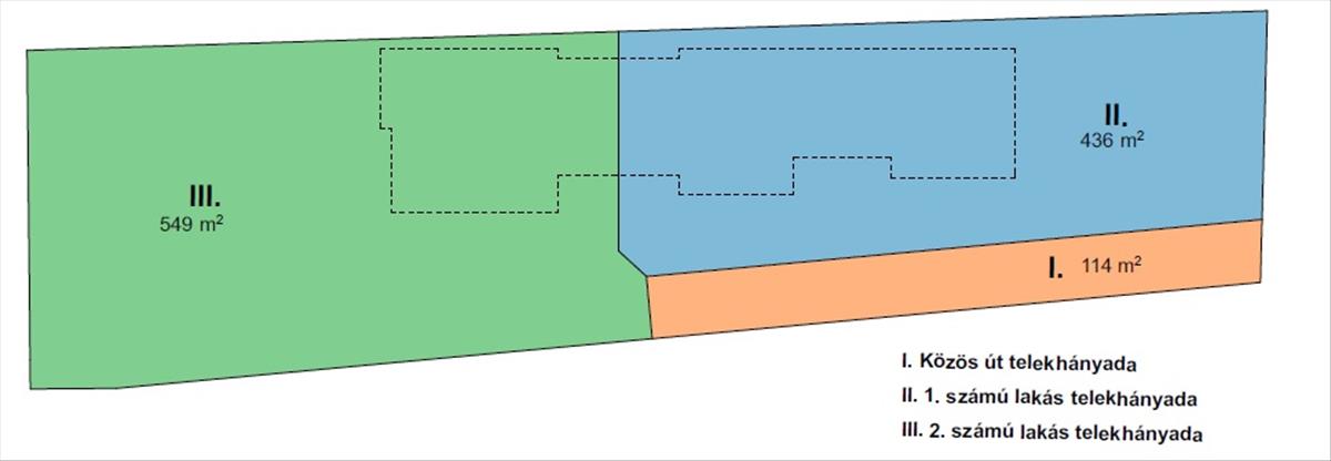 A két lakáshoz egy saját telekrészektől elszeparált 114m2-es közös út vezet be!