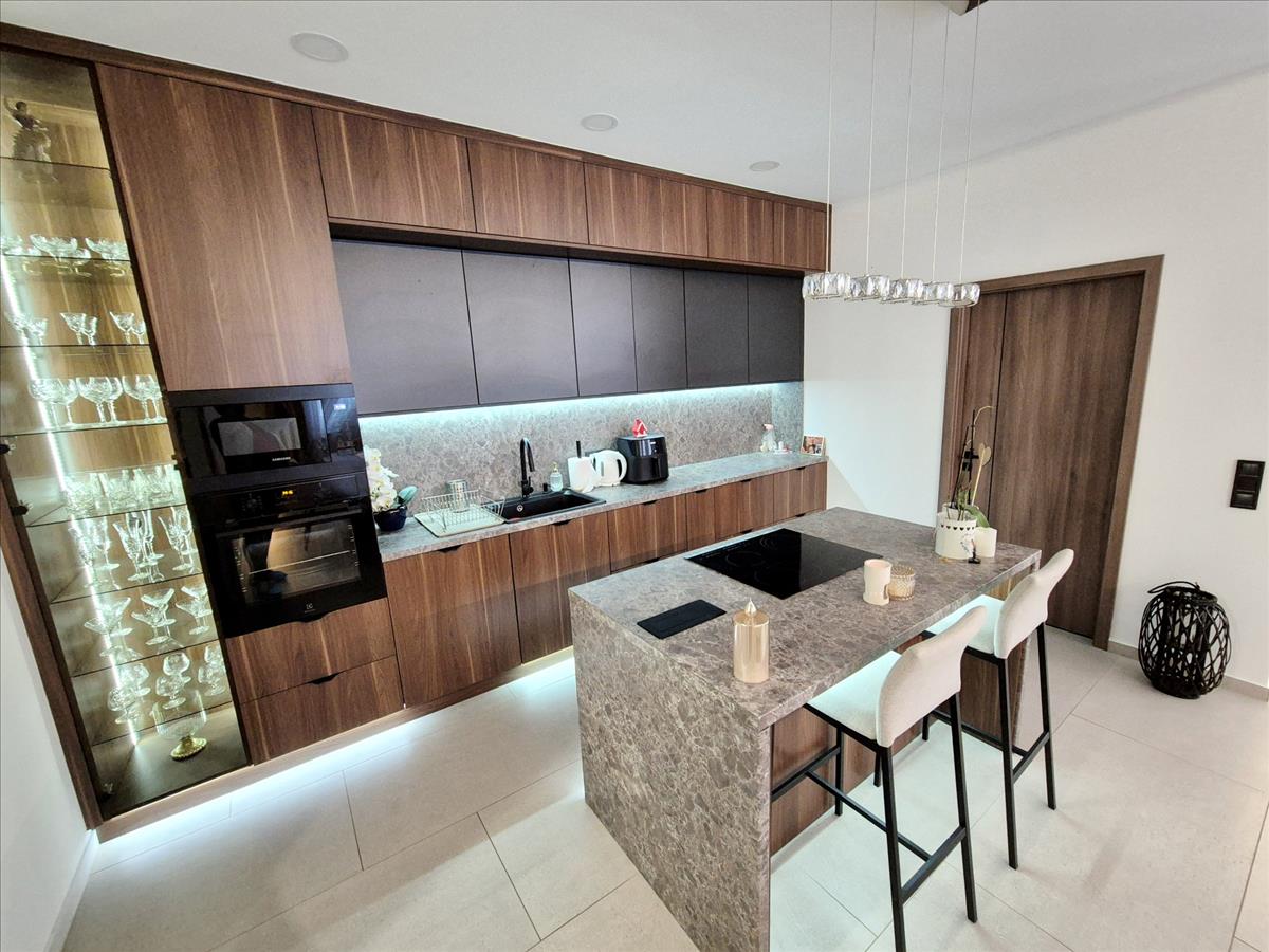 A modern konyhát egy funkciónális konyhasziget egészíti ki, amelybe beépített hosszabbító, valamint egy electrolux indukciós főzőlap került elhelyezésre, számtalan plusz tárolóval, így a mindennapi használat és a főzés egyaránt kényelmes és hatékony. További beépített konyhagépek: whirlpool 12 terítékes beépített mosogatógép, toronyba épített, electrolux légkeveréses sütő, samsung beépített mikrohullám sütővel.