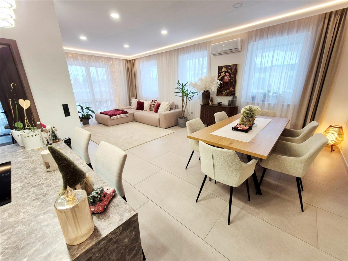 •Elosztás: tágas 43m2 nappali – konyha - étkező konyhaszigettel, 3 jó méretű hálószoba 10, 73m2, 9, 62m2, 9m2, nagyméretű ablakkal rendelkező fürdőszoba zuhanyzó és fürdőkáddal felszerelve, ablakkal rendelkező vendég mosdó, külön háztartási helyiség, ahol a mosó és szárítógép is kényelmesen elfér, külön gardrób és egy kamra helyiség is elérhető.