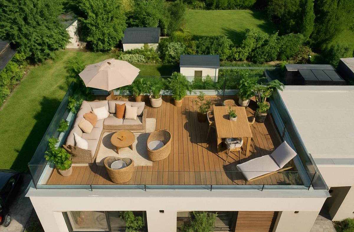 •A tetőteraszt napozó teraszként tud funkcionálni. Ai terv a képek között.