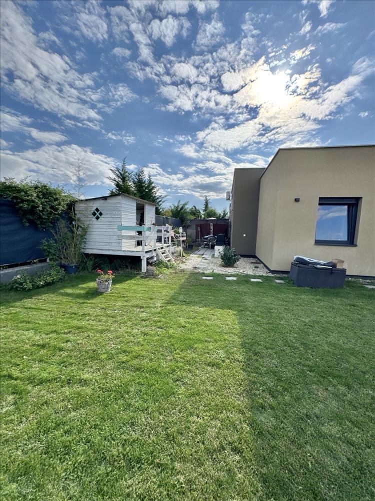 2019-ben épült, modern és különleges hangulatú ikerház eladó Dunaharaszti egyik legkedveltebb, csendes, zöldövezeti részén, a Bezerédi lakópark zsákutcájának legvégén.