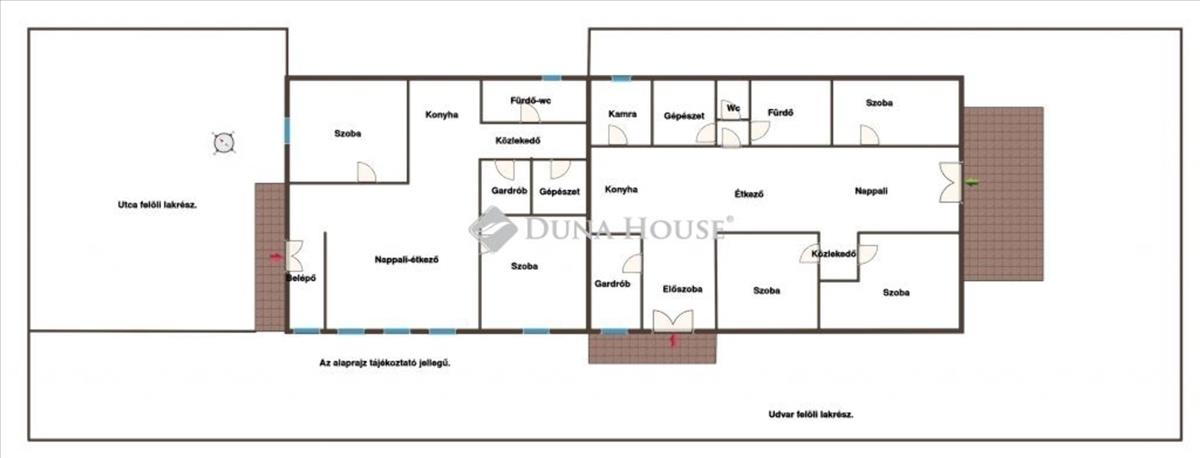 Az épület belsőudvari 126 nm -es, melyhez 496 nm -es elkerített telekrész tartozik.