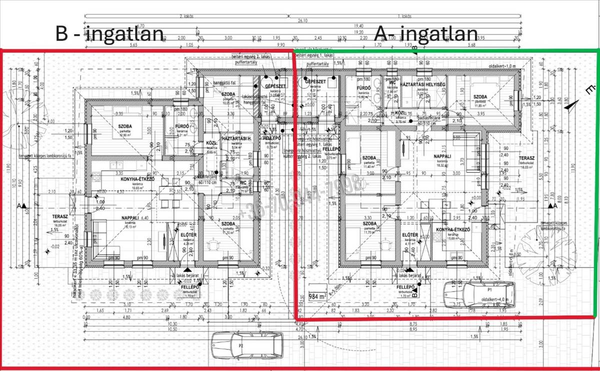 B- lakás nettó 95. 38 Nm + 18. 48 Nm terasz, telek 630 nm