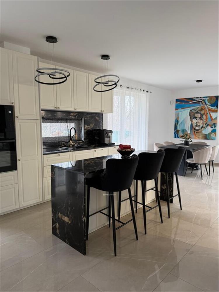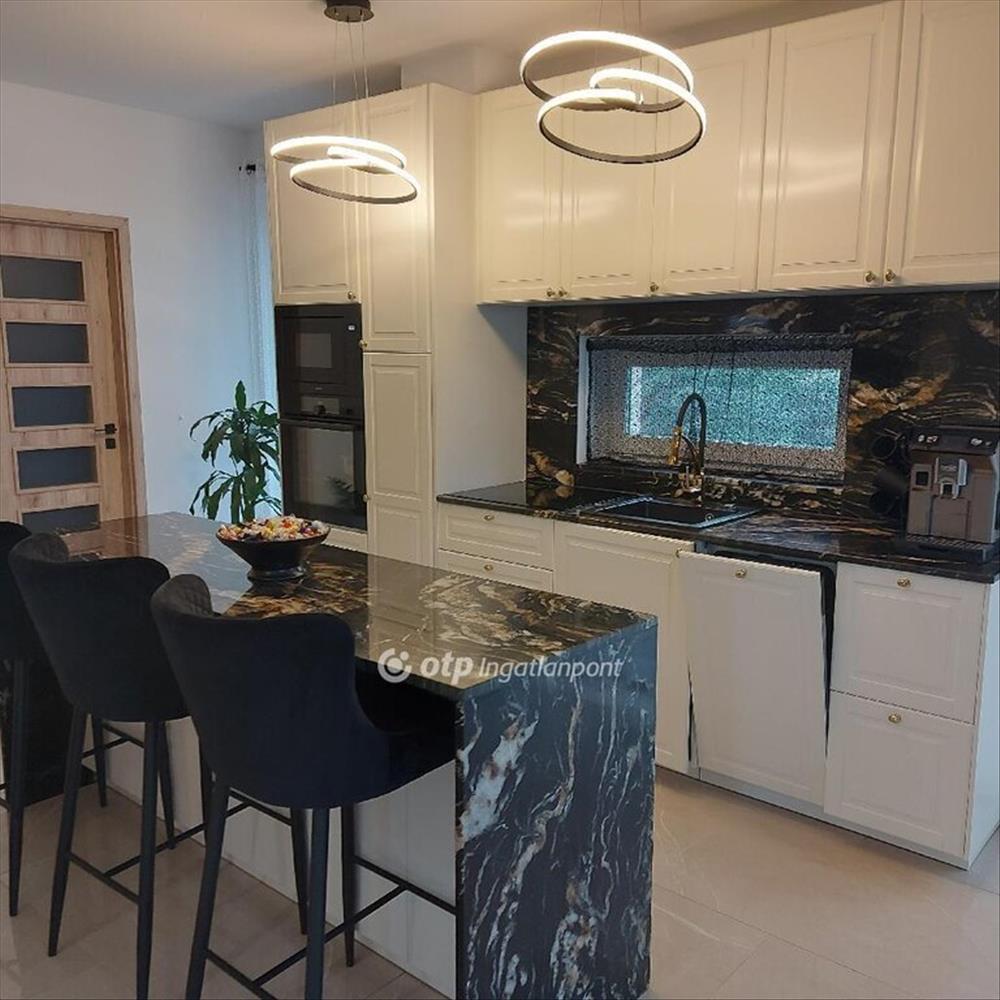 Eladásra kínálunk Pest megyében, Budapesttől 20-30-percre Dunavarsány Nagyvarsányi részén, az 51 -es főúttól fél percre, tavak és a Duna közelségében, egy csendes utca domboldalán elhelyezkedő ikerházat, mely térbeli eltolással, és csak a gépészeti helyiségekkel összekötött a szomszéddal. a díszfás előkert két autó beállóval rendelkezik. a minden igényt kielégítő, 441 m2-es telken felépült 135 m2-es otthon első osztályú belső lakberendezése a homok szín, a púderes puha árnyalatok, az arany és az extravagáns fekete és fehér kiegyensúlyozott keveréke, amely már a belépéskor a luxus finomságait tárja elénk. Széles előszobában praktikus elrendezéssel nyílik a délnyugati fekvésü amerikai konyhás nappali, a fehér és fekete márványos árnyalatok váltják egymást a púderszínü bárszékekkel. a konyhabútor Ikea tervezésü, felsőkategóriás gépekkel szerelt, finom arany hangsúlyokkal, a mosogatónál kilátással a kertre. Az ebédlő és a nappali bútorai is harmonizálva, hívogatóan gyönyörködtetik a szemet, mert a tágas, világos, minden oldalról ablakokkal és terasz ajtóval ellátott nagy tér és a puha kiegészítők, szőnyegek mind-mind a praktikus esztétikum jegyében kelnek összhangra. Az egyediséget egy borszoba is tetőzi közel a bárpulthoz, szinte látjuk magunk előtt, ahogy a barátokkal alig várjuk, hogy az egyedi tervezésü és berendezésü bortartókból az ízléses világításokkal szerelt térben a borospoharakba kerülhessen a kellően hidegen tárolt isteni nedü. Pazar a látvány, hívogat.