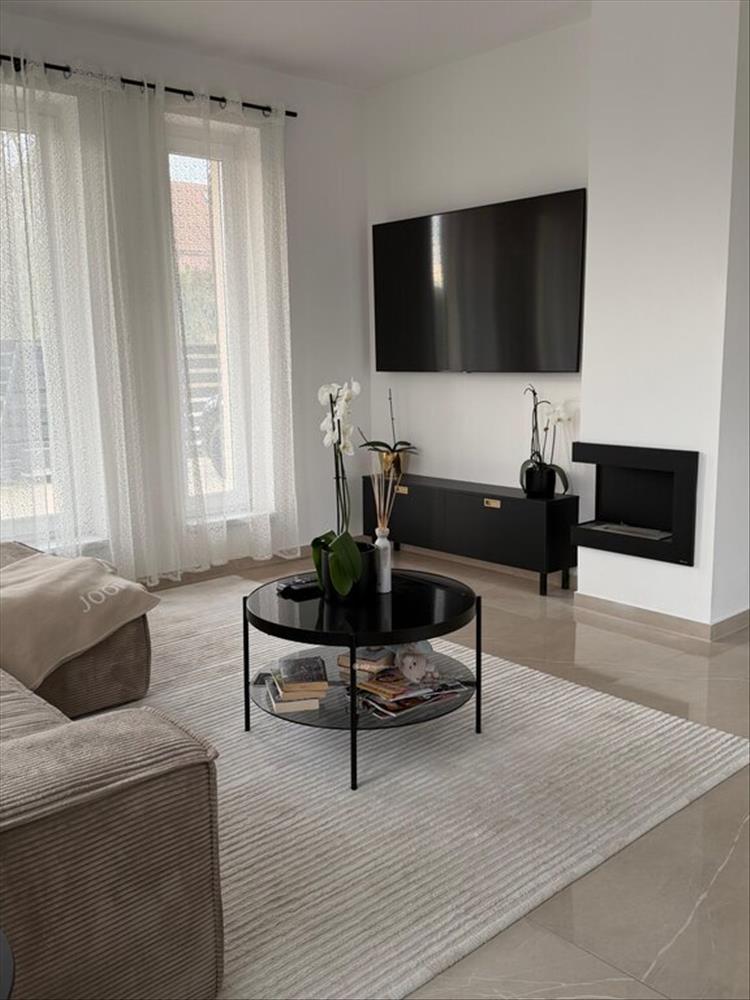 Eladásra kínálunk Pest megyében, Budapesttől 20-30-percre Dunavarsány Nagyvarsányi részén, az 51-es főúttól fél percre, tavak és a Duna közelségében, egy csendes utca domboldalán elhelyezkedő ikerházat, mely térbeli eltolással, és csak a gépészeti helyiségekkel összekötött a szomszéddal. a díszfás előkert két autó beállóval rendelkezik. a minden igényt kielégítő, 441 m2-es telken felépült 135 m2-es otthon első osztályú belső lakberendezése a homok szín, a púderes puha árnyalatok, az arany és az extravagáns fekete és fehér kiegyensúlyozott keveréke, amely már a belépéskor a luxus finomságait tárja elénk. Széles előszobában praktikus elrendezéssel nyílik a délnyugati fekvésű amerikai konyhás nappali, a fehér és fekete márványos árnyalatok váltják egymást a púderszínű bárszékekkel. a konyhabútor Ikea tervezésű, felső kategóriás gépekkel szerelt, finom arany hangsúlyokkal, a mosogatónál kilátással a kertre. Az ebédlő és a nappali bútorai is harmonizálva, hívogatóan gyönyörködtetik a szemet, mert a tágas, világos, minden oldalról ablakokkal és terasz ajtóval ellátott nagy tér és a puha kiegészítők, szőnyegek mind-mind a praktikus esztétikum jegyében kelnek összhangra. Az egyediséget egy borszoba is tetőzi közel a bárpulthoz, szinte látjuk magunk előtt, ahogy a barátokkal alig várjuk, hogy az egyedi tervezésű és berendezésű bortartókból az ízléses világításokkal szerelt térben a borospoharakba kerülhessen a kellően hidegen tárolt isteni nedű. Pazar a látvány, hívogat.
