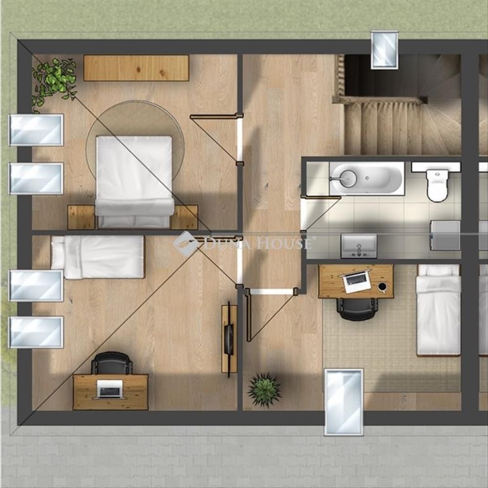 - Esztétikus megjelenés: barna tetőcserép, bézs nemesvakolat FIX 3% lakáshitelre megvehető