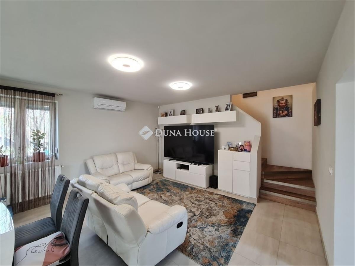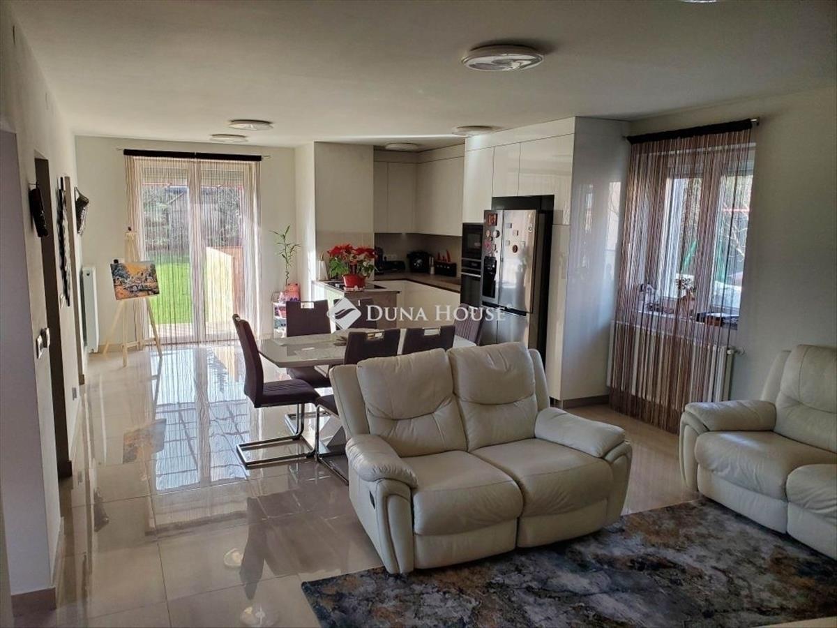 Érd Parkváros egyik csendes utcájában eladó egy modern, kétszintes, 155 m²-es ikerház 810 m²-es telken!Érd Parkváros közkedvelt részén 810 négyzetméteres saját telken belső két szintes + pinceszint, összesen 155 négyzetméteres nappali + 4 szobás, dupla komfortos, újszerű állapotban lévő ikerházi lakás (2épület) 1 gk-s garázzsal, számos extrával!