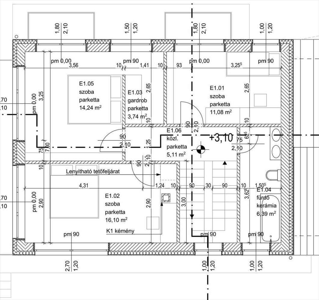 kisebb terasz tartozik). a szülői hálóhoz gardróbszoba is kapcsolódik. Az emeleten