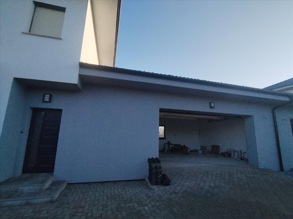 épített, kétlakásos, dupla garázsos kétszintes ikerház, több terasszal, saját kertrésszel,