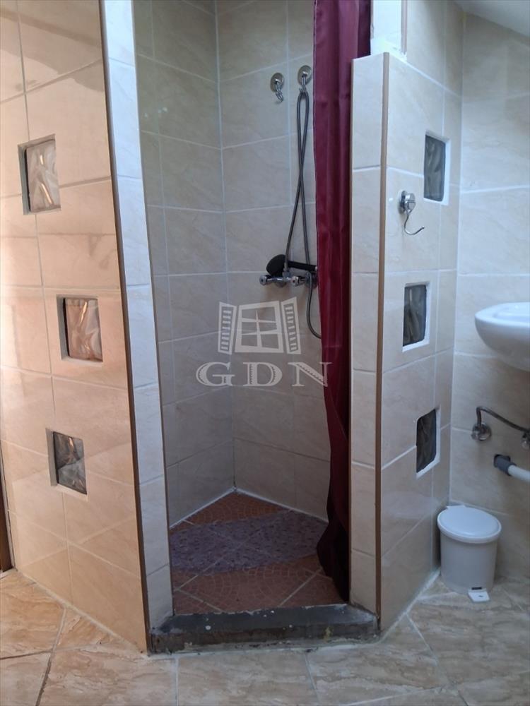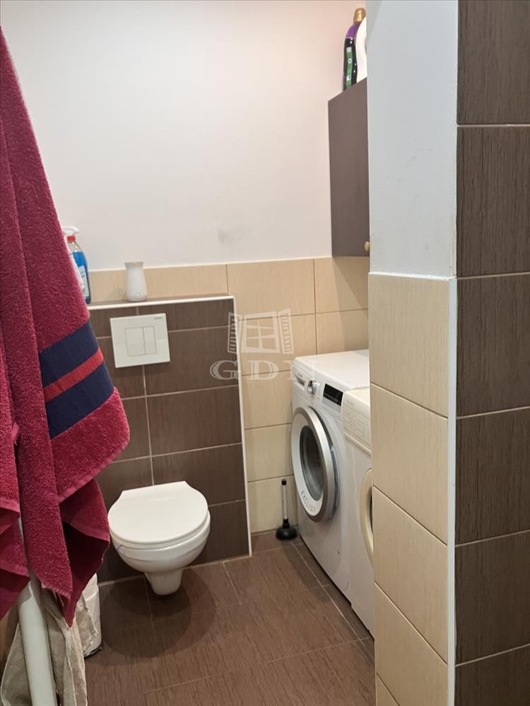 A fürdőszoba modern kialakítású, zuhanykabinnal, külön WC-vel, mosógép elhelyezési lehetőséggel.