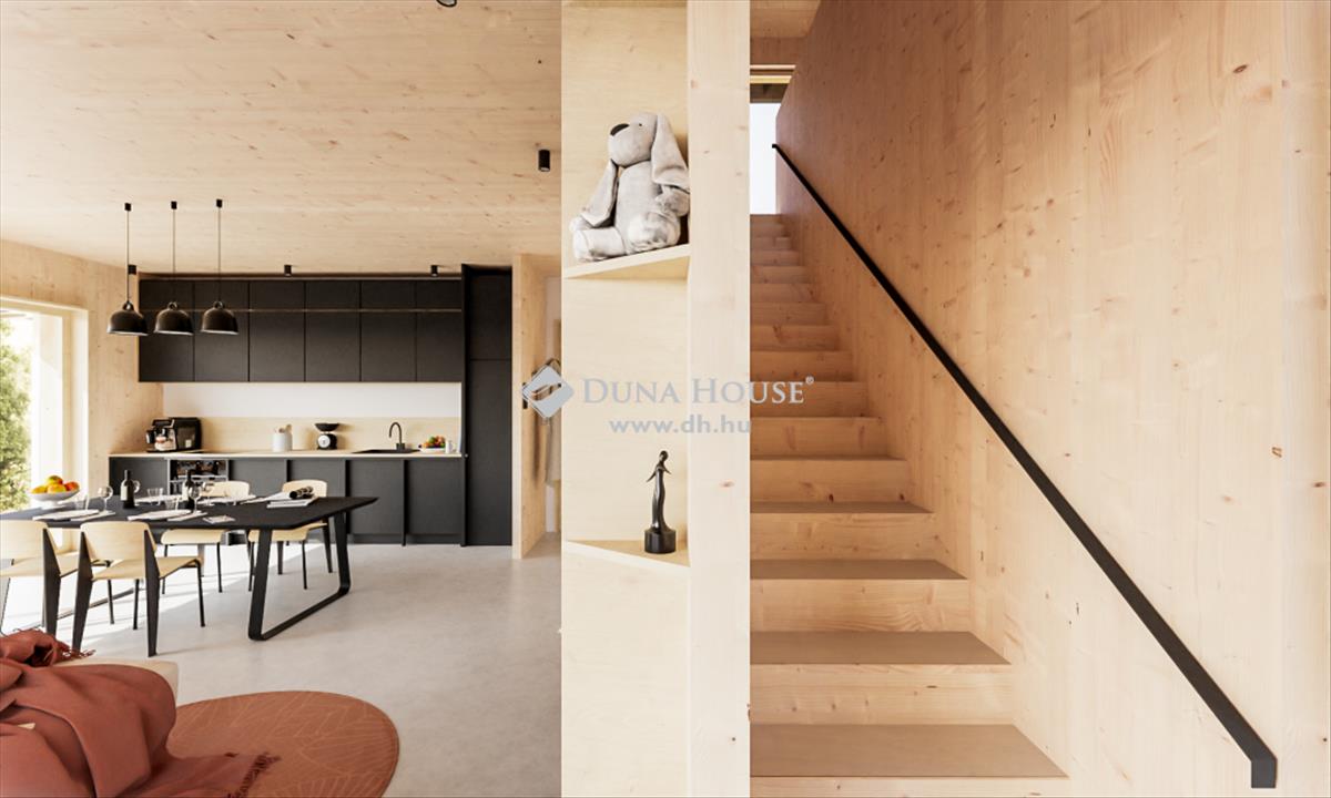 - Természetes és egészséges anyagpaletta (mérnöki fa szerkezet, cellulóz hőszigetelés, fa nyílászárók, VOC-mentes belső terek).