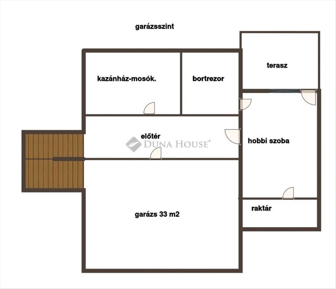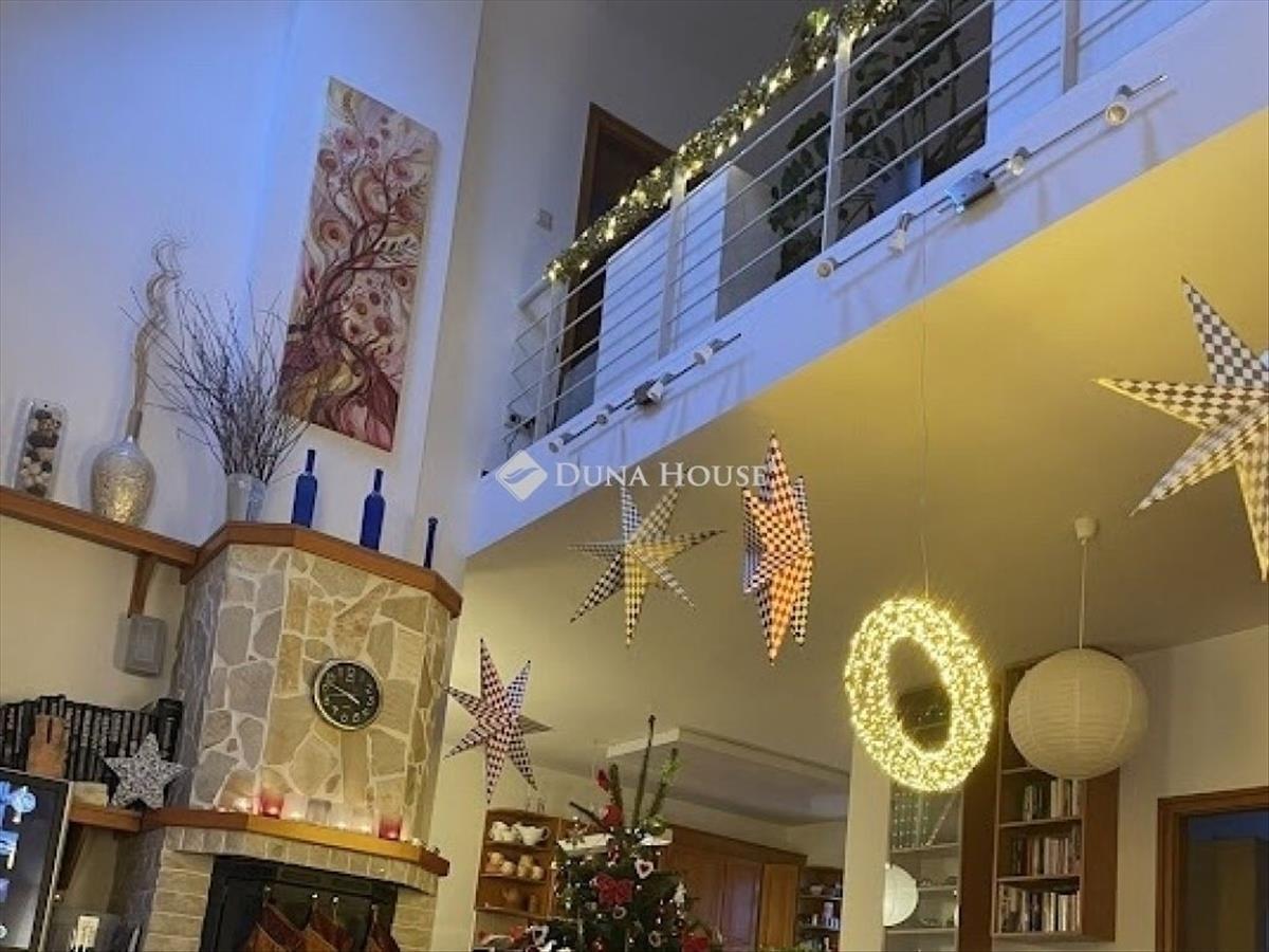 A földszinten tágas nappali vár kandallóval és klímával. Külön étkező szolgálja a kényelmes családi étkezéseket. a konyhához kamra tartozik, ami megkönnyíti a tárolást. a szinten található hálószoba saját gardróbbal és fürdővel. Három wc növeli a napi komfortot.