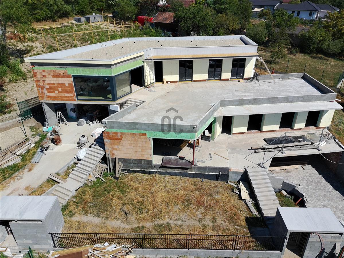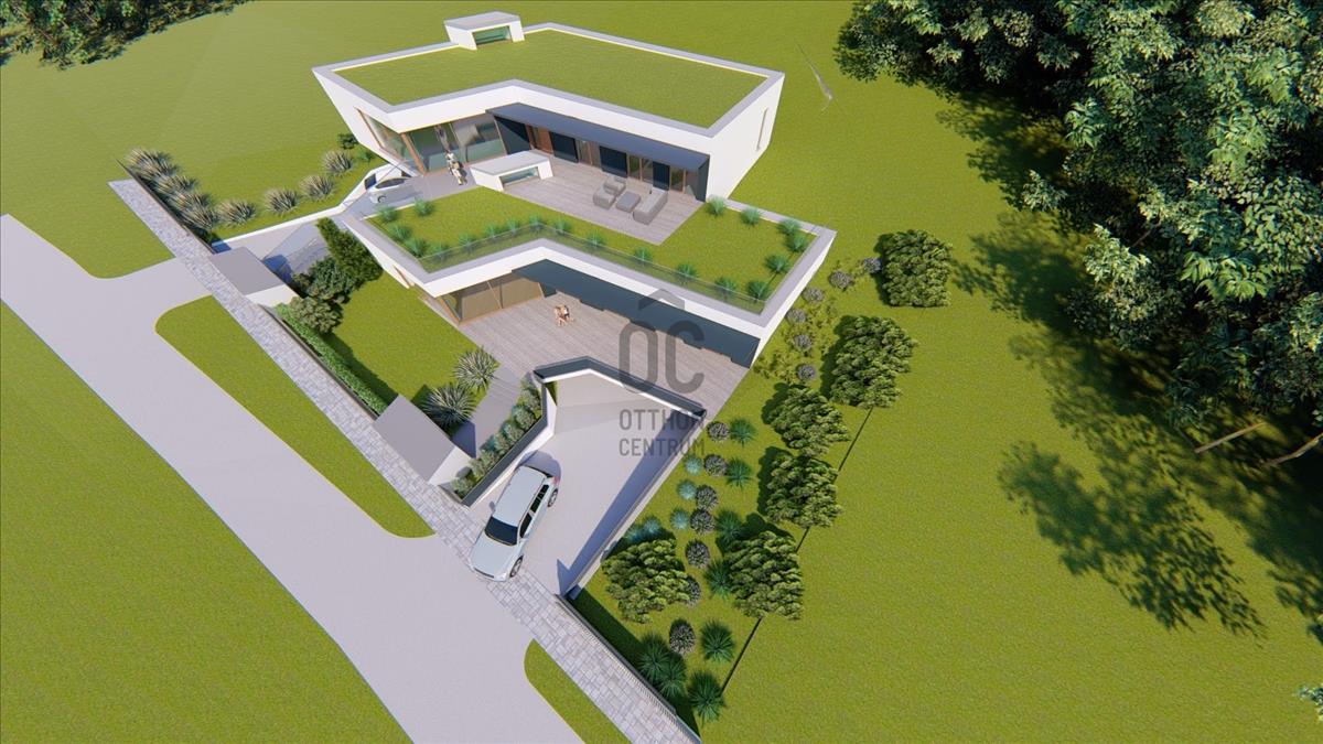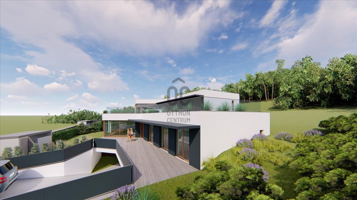 Az épület formavilága rendkívül impozáns. Egyedi módon, szinteltolással kapcsolódik egymáshoz a két ház. Az ingatlant átgondolt, praktikus alaprajz, magas minőségű kivitelezés, modern, minden igényt kielégítő felszereltség jellemzi. Elhelyezkedése rendkívül csendes, zöld. Egy zsák utca végén, természetvédelmi terület szélén van, ami intimmé teszi. a hatalmas nyílászáróknak köszönhetően a ház világos, napos, panorámás a környező erdős hegyekre. a 61 m2-es terasz és a hozzákapcsolódó 78 m2-es zöldtető tökéletes helyet biztosít a kellemes pihenésre, kikapcsolódásra.