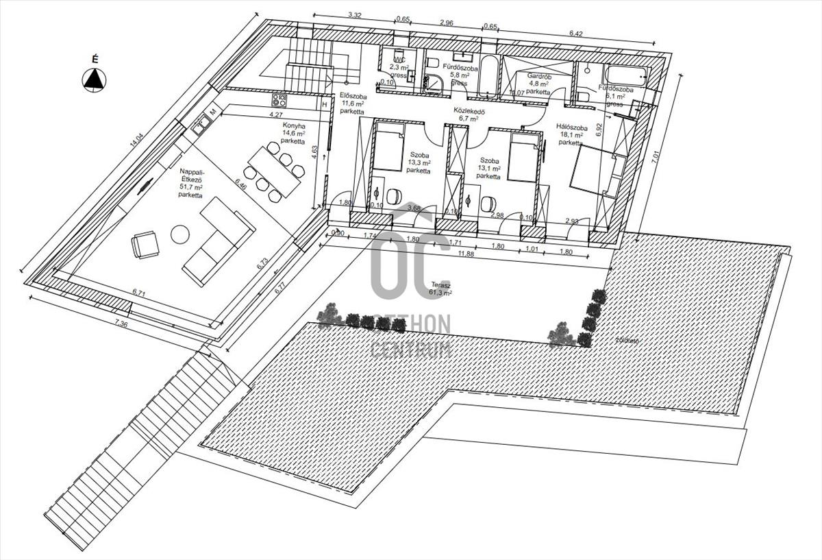 • Tájolás:DNY