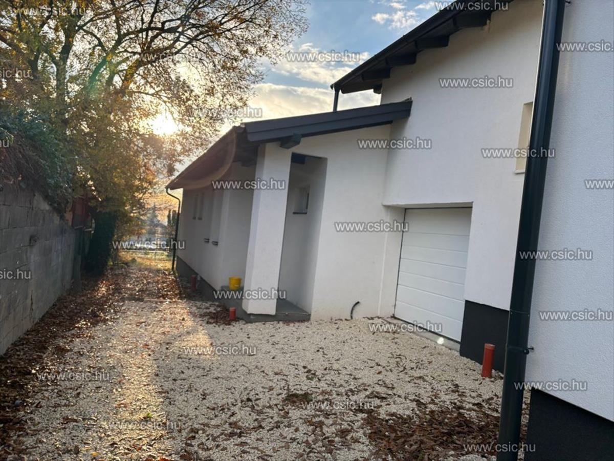 Az ingatlan a másik házrésszel csak a garázs és terasz falánál kapcsolódik, így kiválóan szeparált, teljesen önálló házként funkcionál.