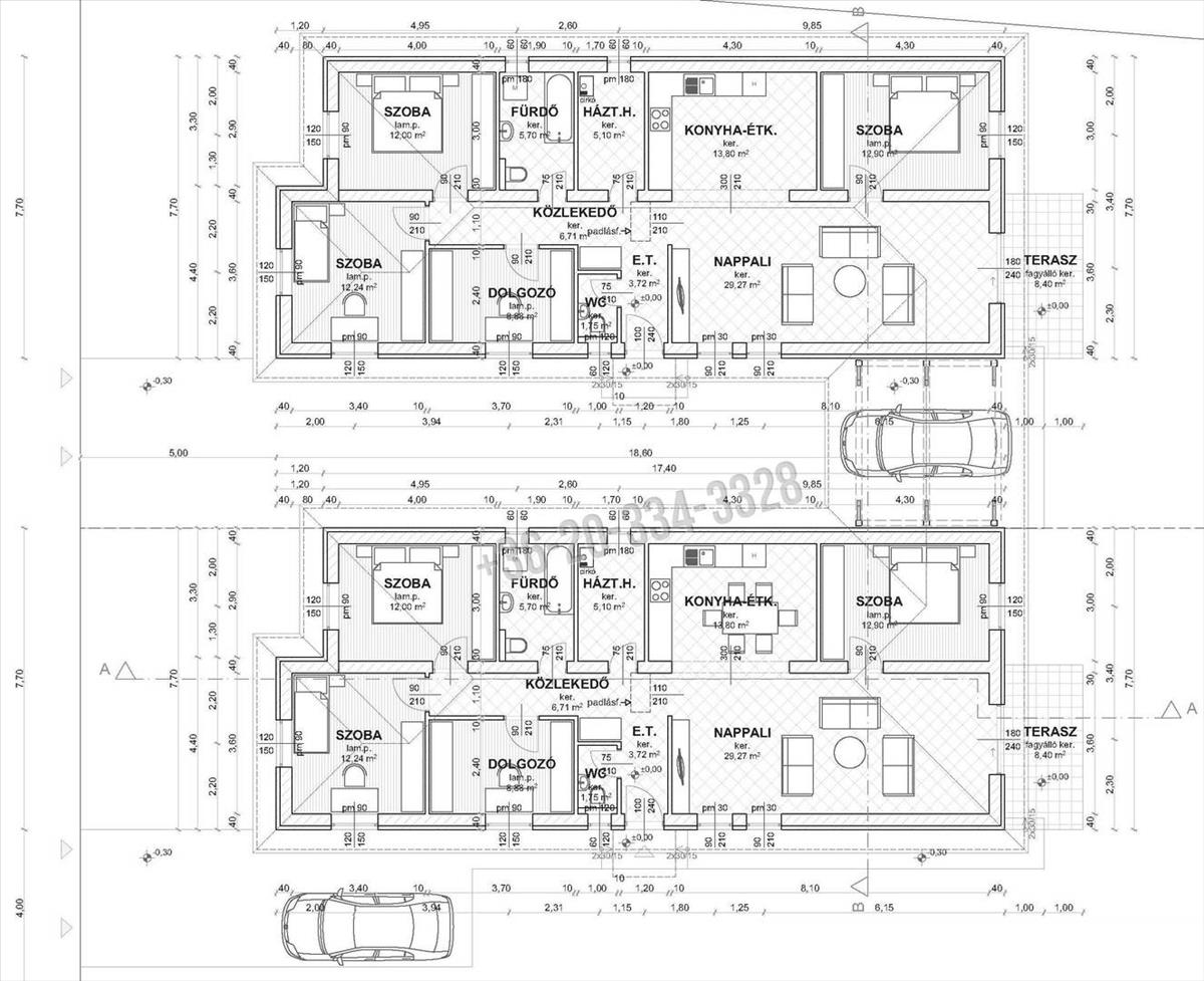 Az 1168 nm-es telekre két ház épül, melyek csak a gépkocsi beállónál érintkeznek, nincs közös FAL!