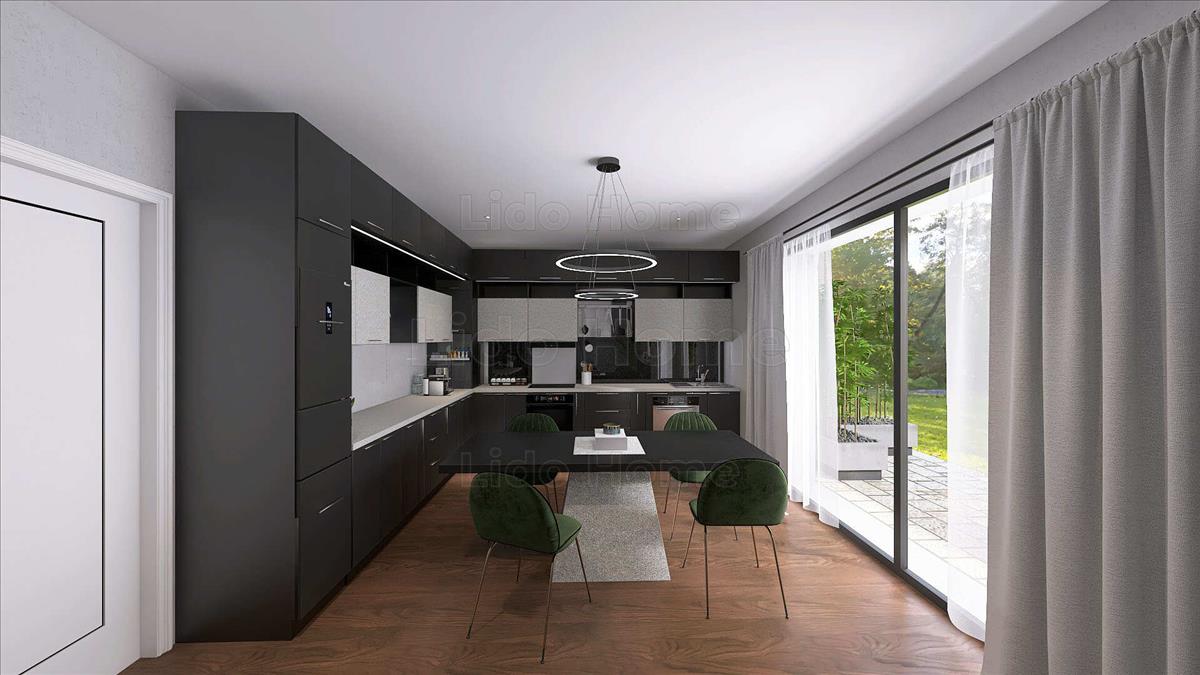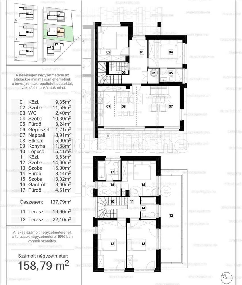 - Beosztása a következő: a földszinten közlekedő, konyha, étkező, nappali, fürdőszoba mellékhelyiséggel, külön wc, szoba, gépészet, terasz, a felső lakás részen közlekedő, 3 szoba, 2 fürdőszoba mellékhelyiséggel, gardrób valamint egy terasz lesz kialakítva