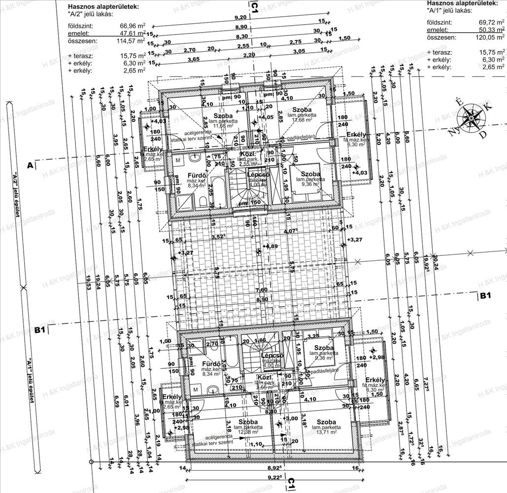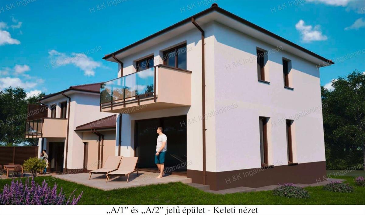 Jelen hirdetésben az a épület 1-es lakása szerepel, mely hasznos lakóterülete a garázzsal 120, 05 nm + terasz + erkélyek, amerikai-konyhás nappali + 3 szobás, dupla-komfortos, kb. 400 Nm-es telekrésszel.