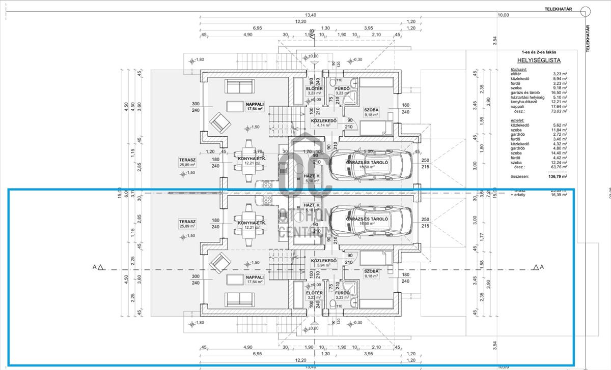 Az ingatlan nettó lakóterülete 136, 79 m², amelyhez 25, 89 m² terasz és 16, 39 m² erkély tartozik.