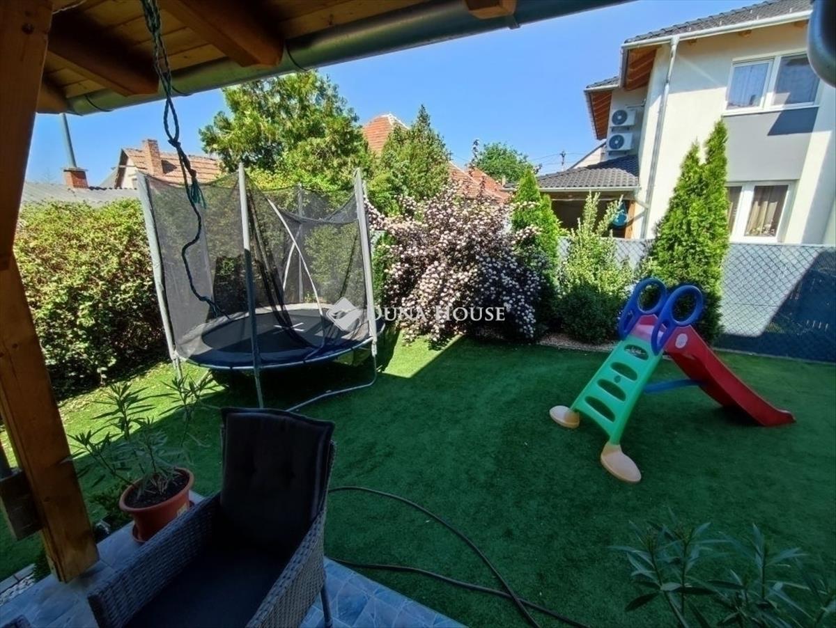 Eladó ikerház FótújfalunEladásra kínálok Fótújfalu egyik csendes utcájában egy 2017-ben épült ikerházat, mely rendkívül jó állapotú egy tisztasági festéssel akár azonnal költözhető. a ház 30-as téglából épült, 15 cm-es hőszigeteléssel, műanyag nyílászárókkal. a fűtést és a meleg víz ellátását kombi gázcirkó biztosítja, az emeleten elhelyezett klíma pedig a teljes szint hűtésére alkalmas. Az ingatlan elő van kábelezve riasztórendszer kiépítéséhez, elektromos kapuval, kerti csappal és egy autó számára térkövezett kocsibeállóval rendelkezik. Az Élettérről: a földszinten, tágas-világos amerikai konyhás nappali (34m2), szoba, fürdőszoba és egy előszoba található. Az emeleten 3 szoba, közlekedő és egy fürdőszoba került kialakításra. a padlástér nem került beépítésre, kiválóan alkalmas elapakolandó dolgainkat elhelyezni. a nappaliból nyílik egy 14m2-es fedett terasz az udvari részre. Az ingatlanhoz tartozik egy 250m-es kert, mely prémium minőségű műfűvel borított így igen alacsony fenntartási költséget von maga után. Az udvar méretéből adódóan kiválóan alkalmas baráti és családi összejövetelekre, ahol nyugodtan kihasználhatjuk a környék adta nyugalmat. a szomszédság kedves és csendes, mely elengedhetetlen egy nyugodt Életvitelhez, jó lakóközösség jellemzi a környéket. a ház elhelyezkedése is verhetetlen: m2, iskola, óvoda, orvosi rendelő, lidl, bevásárlási lehetőségek mind elérhető pár perc autóval. Ajánlom Családosoknak és azoknak akik szeretnének egy nagyon jól megépített ingatlan új Tulajdonosai lenni további költségek nélkül. Bármilyen kérdés esetén keressen bizalommal! Független hitelügyintézésben is tudok segíteni teljesen díjmentesen, sok időt megspórolva!