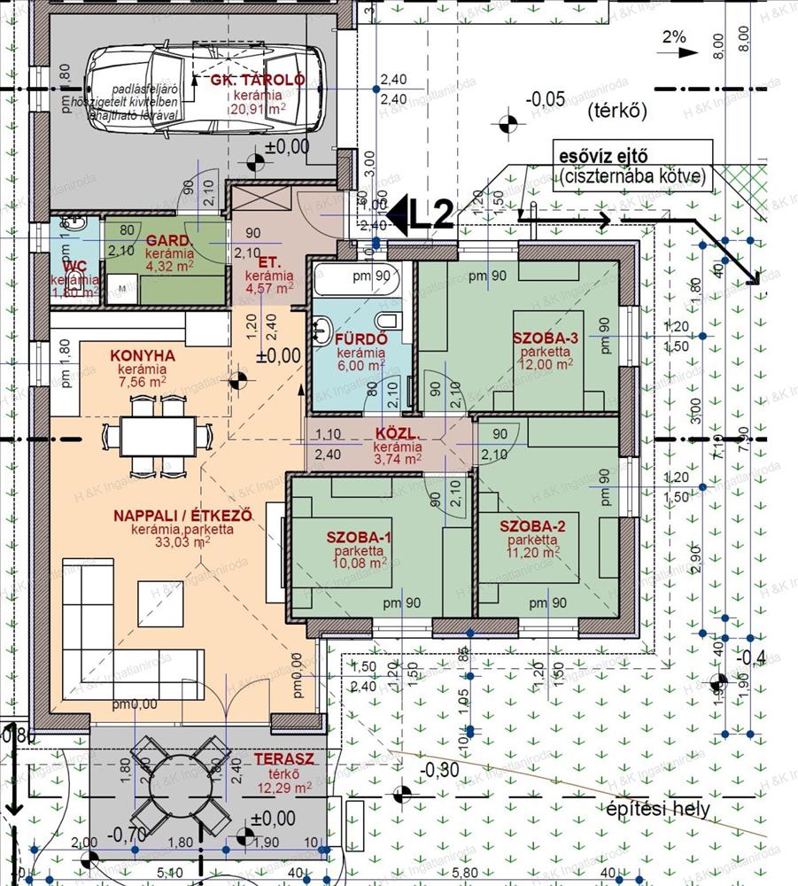 A praktikus elrendezésű otthon tágas nappalival és közvetlen teraszkapcsolattal készül, amely kellemes életteret biztosít a mindennapokhoz. a nagy, saját kert kiváló lehetőséget nyújt pihenésre, családi programokra vagy akár egy igényes kert kialakítására.