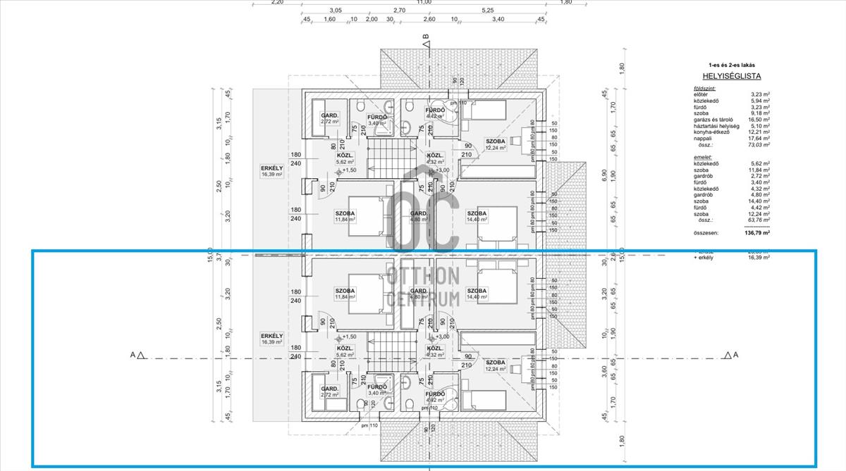 Az ingatlan nettó lakóterülete 136, 79 m², amelyhez 25, 89 m² terasz és 16, 39 m² erkély tartozik.