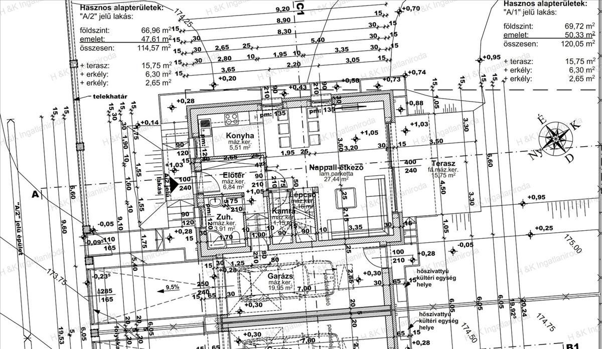 Jelen hirdetésben az a épület 2-es lakása szerepel, mely hasznos lakóterülete a garázzsal 114, 57 nm + terasz + erkélyek, amerikai-konyhás nappali + 3 szobás, dupla-komfortos, 345 nm-es telekrésszel.