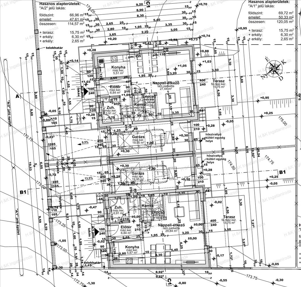 Az 1200 nm-es telekre két ikerház épül.