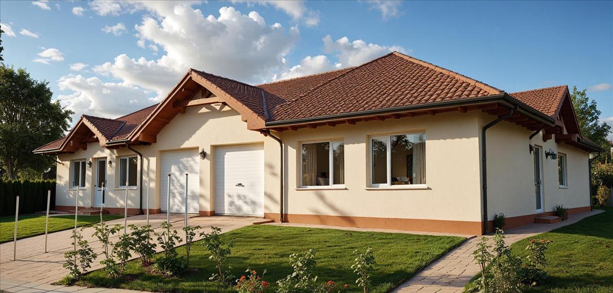- betonjárda a bejárathoz és betonút a garázsba, a földterület le lesz simítva de a zöldesítés vagy térkövezés már a vevő dolga lesz