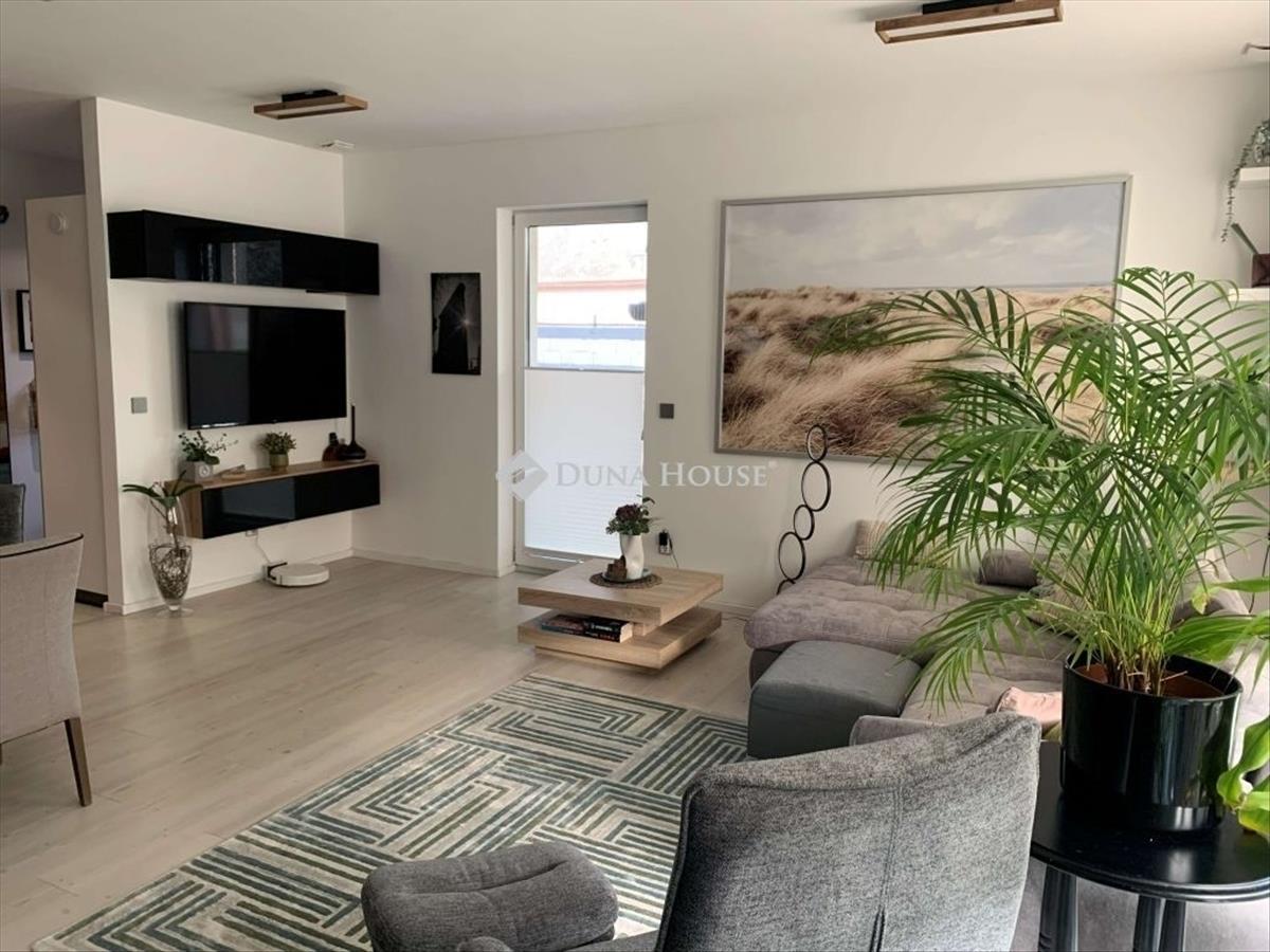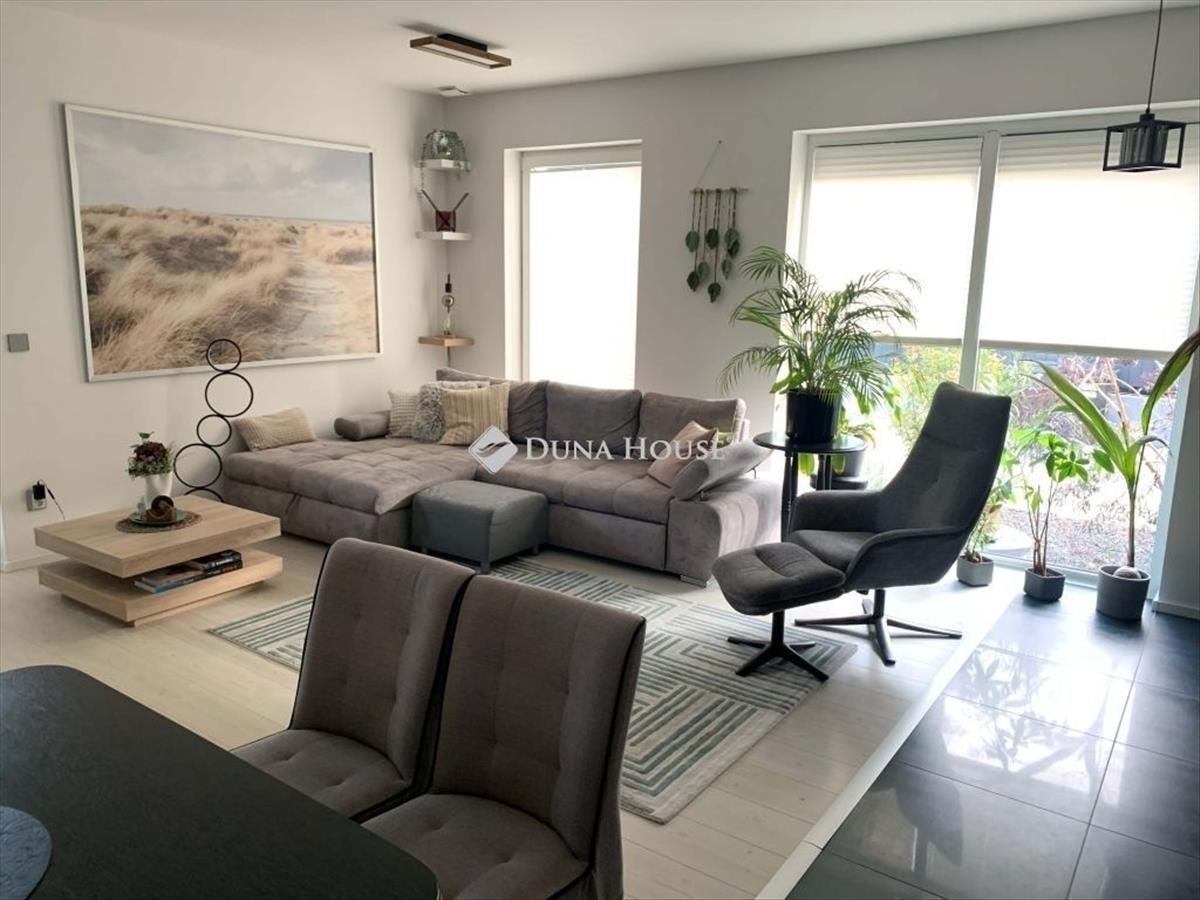 Gárdony szívében!Berendezett, ikerház fél a Velencei-tó közelében eladó. Egy nyugodt, csendes utcában található ez az új építésű, kétszintes ikerházfél (2-es lakás), ahol a modern technológia és a minőségi kivitelezés találkozik a kényelmes mindennapokkal. Az elhelyezkedés kiváló: iskola, orvosi rendelő, gyógyszertár, boltok, vasútállomás, kerékpárút és a Velencei-tó egyaránt könnyen elérhető. a 293 m²-es saját használatú telekrész rendezett és automata öntözőrendszerrel ellátott, így a kert gondozása minimális időt igényel. a házhoz két autó számára kialakított saját beálló tartozik, távirányítással működtetve. a 2024-ben használatbavételi engedélyt kapott ingatlan szerkezete tartós és energiatakarékos:* 30 cm-es tégla falazat* Monolit vasbeton födém* Betoncserép fedés* 15 cm homlokzati hőszigetelésA korszerű gépészeti rendszer egész évben élhető, kellemes klímát biztosít:*Padlófűtés minden helyiségben*Mennyezethűtés*9 kW-os Panasonic hőszivattyú*3×20A villamoshálózat + H-tarifa előkészítés*A hővisszanyerős szellőzés csövezése kiépítveA konyha beépített, modern és praktikus megoldásokkal készült. a lakás további helyiségei igényes bútorokkal berendezve, melynek jelentős része maradna is, így az ingatlanba szinte csak költözni kell. Az emeleti hálószobák redőnnyel felszereltek, a háztartási helyiségből pedig feljárat nyílik a közel 60 m²-es padlástérbe. a 19 m²-es, fedett terasz kényelmes, egész évben használható kültéri pihenőhelyet kínál. Ez az ingatlan tökéletes választás mindazok számára, akik modern, gondozott, berendezett és hosszú távon értékálló otthont keresnek Gárdony csendes, mégis központi részén.