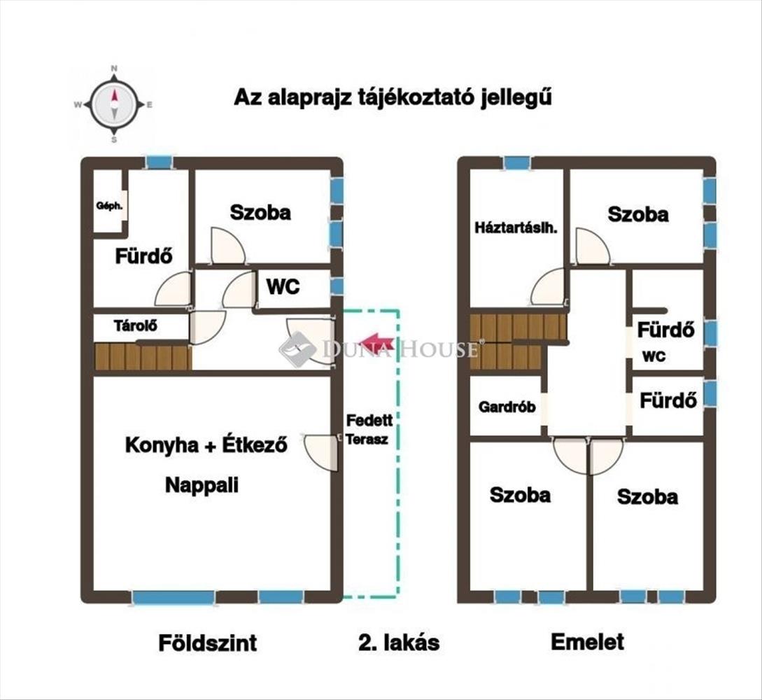 A konyha beépített, modern és praktikus megoldásokkal készült. a lakás további helyiségei igényes bútorokkal berendezve, melynek jelentős része maradna is, így az ingatlanba szinte csak költözni kell. Az emeleti hálószobák redőnnyel felszereltek, a háztartási helyiségből pedig feljárat nyílik a közel 60 m²-es padlástérbe. a 19 m²-es, fedett terasz kényelmes, egész évben használható kültéri pihenőhelyet kínál.