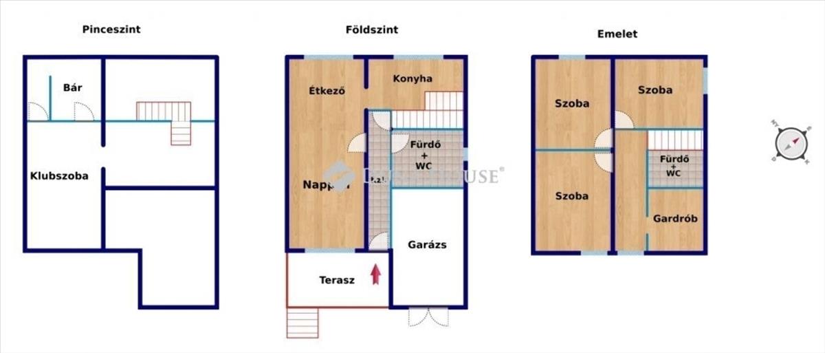 Eladó Göd-Újtelep részén egy 3 szintes ikerház fél. Az ingatlan 1993-ban épült, melyet a jelenlegi tulajdonos 2008-ban vásárolt meg szerkezetkészen és fejezett be. Az ház elosztása a mai kor igényeinek megfelelő, az alsó szinten kialakításra került egy hatalmas nappali étkezővel, konyha, fürdőszoba wc-vel és egy szerelő aknás garázs. a felső szinten jelenleg 3 halószoba, fürdőszoba wc-vel, gardróbszoba található, de van lehetőség még egy teljes értékű szoba kialakítására a gardrób elvesztésével. a pinceszinten kialakításra került egy klubhelyiség bárral, illetve egy kamra is. a garázsba innen is fel lehet jutni. Ez az pinceszinti rész kiváló alkalmat biztosít családi és baráti összejövetelekre vagy kisebb átalakítással dolgozószobának is. a fűtésről gázkazán gondoskodik, de vegyes tüzelésű kazán is beszerelésre került, így költséghatékonyabb a ház fenntartása. a meleg vizet villanybojler szolgáltatja. a ház kívülről dryvit-tal szigetelt, a nyílászárók mindenhol 2 rétegű thermo üvegezésűek, alul műanyag, felül fa, melyekre szúnyogháló és redőny lett felszerelve. Az ingatlan tehermentes, rendezett tulajdoni viszonnyal, rövid időn belül költözhető. Az elhelyezkedés kiváló azoknak, akik a nyüzsgéstől távolabb szeretnének élni. Az m2-es autópálya 1 percen belül megközelíthető, ahonnan a Budapest belvárosa 20 perc. Jöjjön el, nézze meg és legyen az Öné!