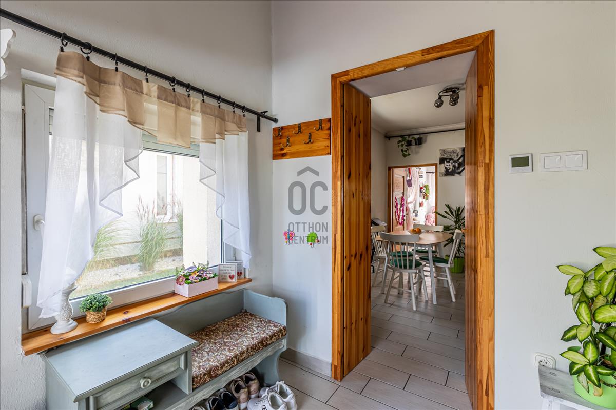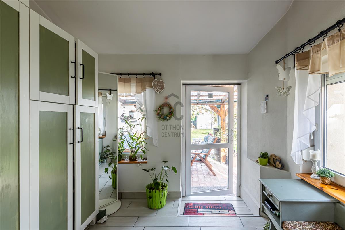 Tágas, részben fedett terasz, nagy, kényelmes előszoba, konyha-étkező, kis fürdőszoba, nappali, 2 félszoba alkotják a helyiséglistát.