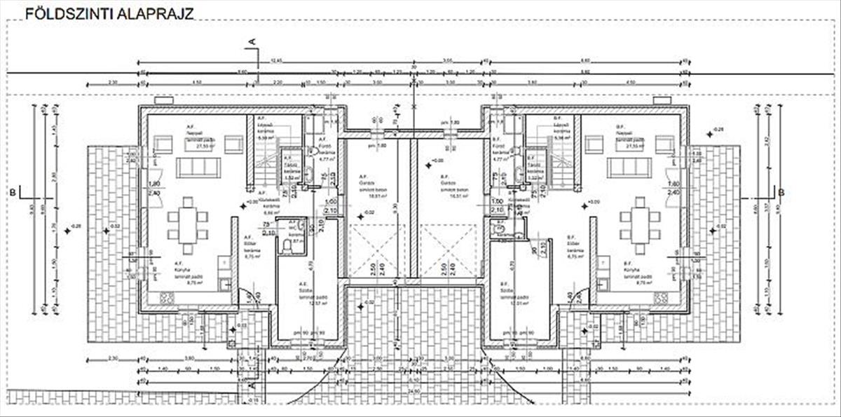 Földszint: Amerikai konyhás nappali, hálószoba, fürdőszoba, wc, garázs.
